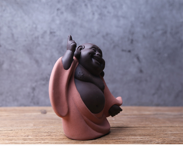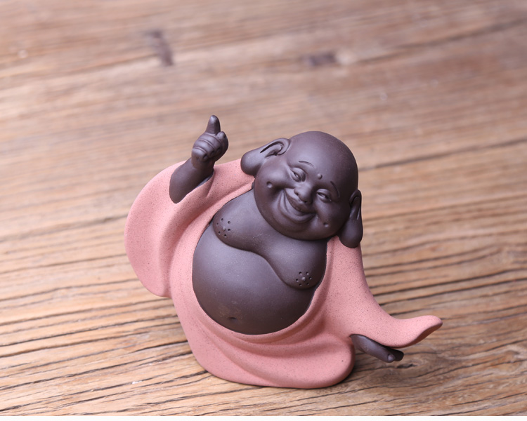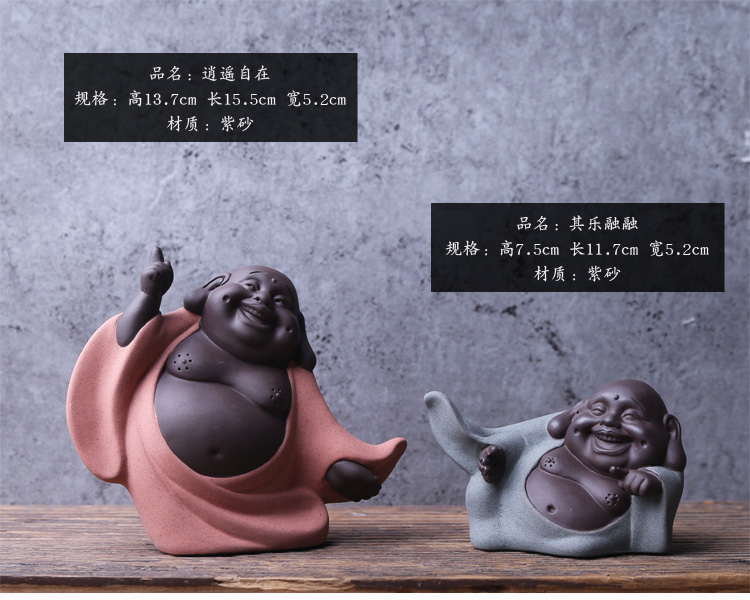 逍遙自在(彌勒佛)逍遙自在 大肚彌勒佛中號茶寵擺件精品紫砂佛像茶具擺設招財茶玩