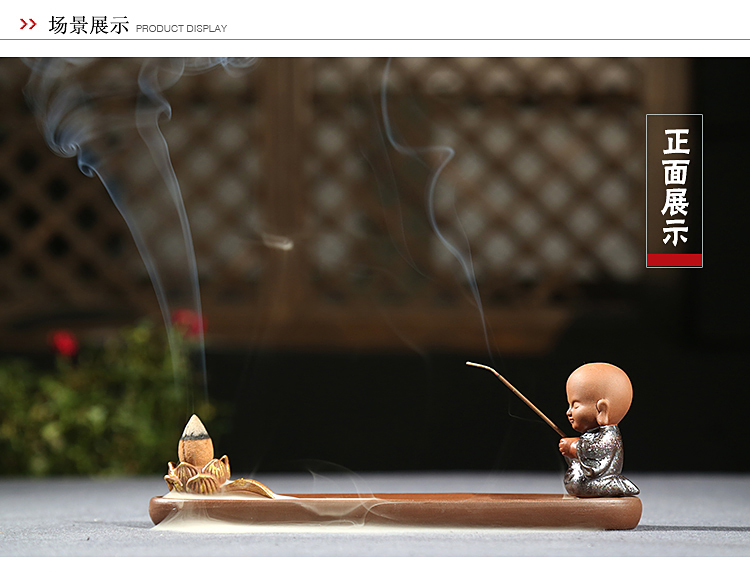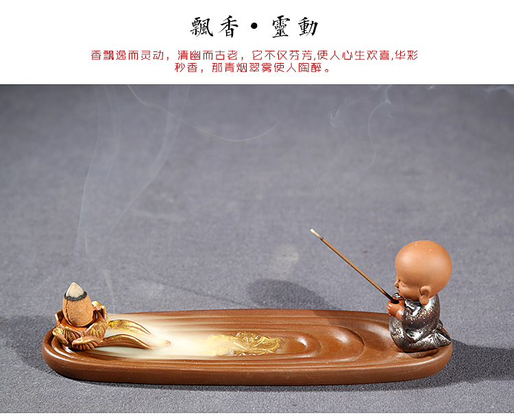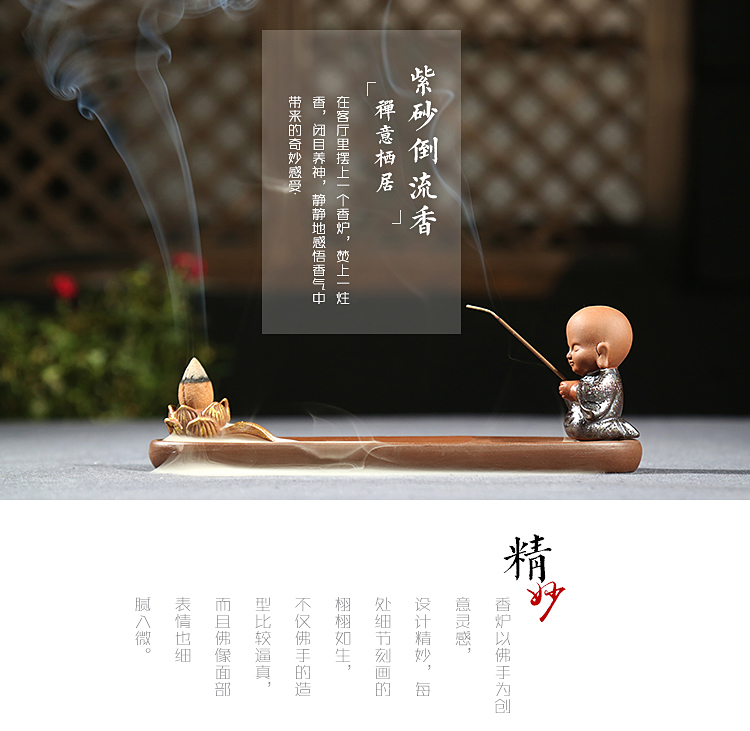 香插祈福(祈)倒流香茶寵擺件精品 可養迷你禪意茶具配件紫砂小和尚創意線香爐