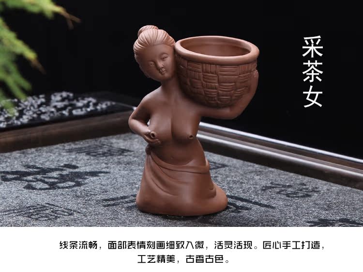 風韻猶存(茶漏)創意茶寵茶漏 陶瓷茶寵美女小和尚擺件創意茶寵擺件 哥窯紫砂茶具