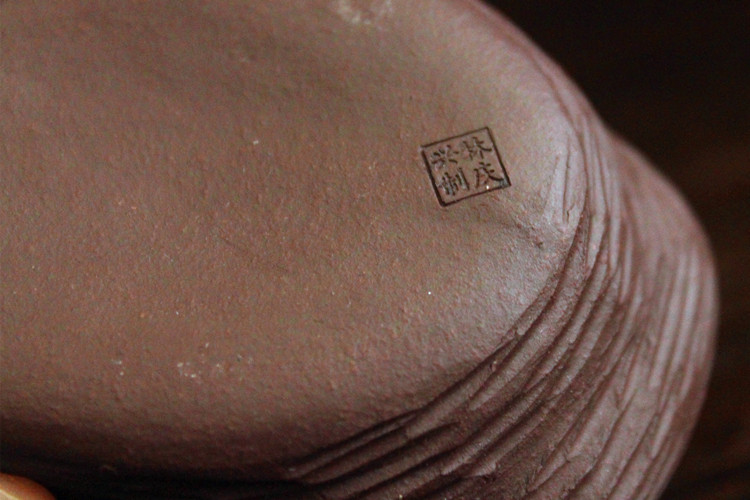 紫砂貝殼青蛙,整體寬度8.5cm,高度5cm。