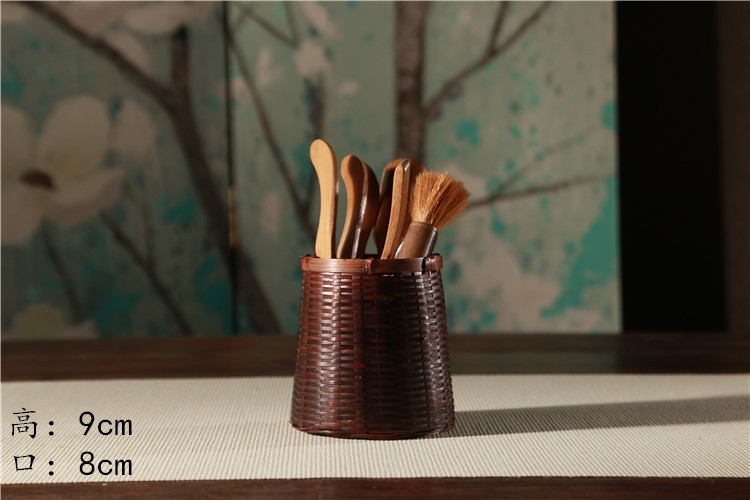 竹編單個(當花器 筆筒)茶道六君子竹制套裝 整套功夫茶具配件 手工茶勺茶夾茶席擺件組合