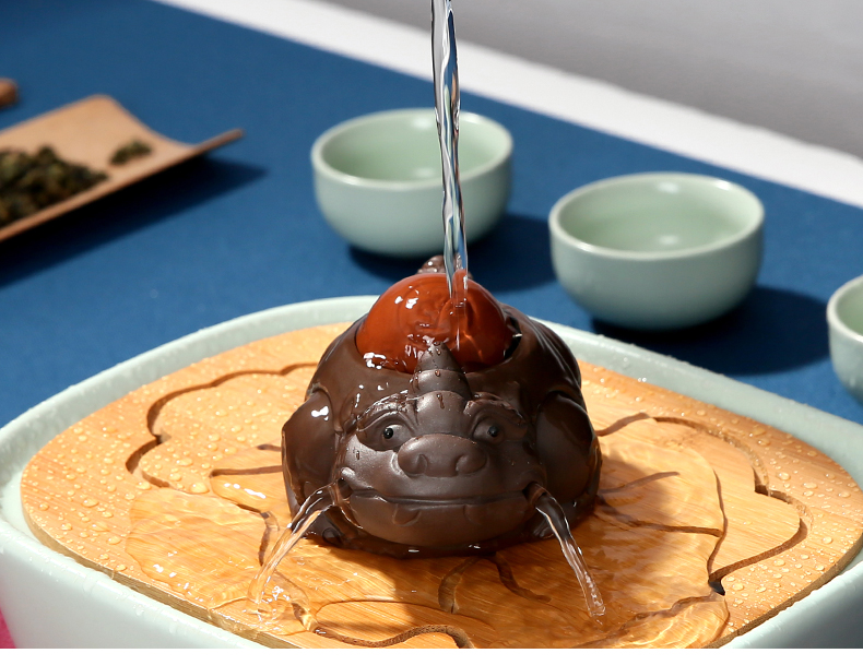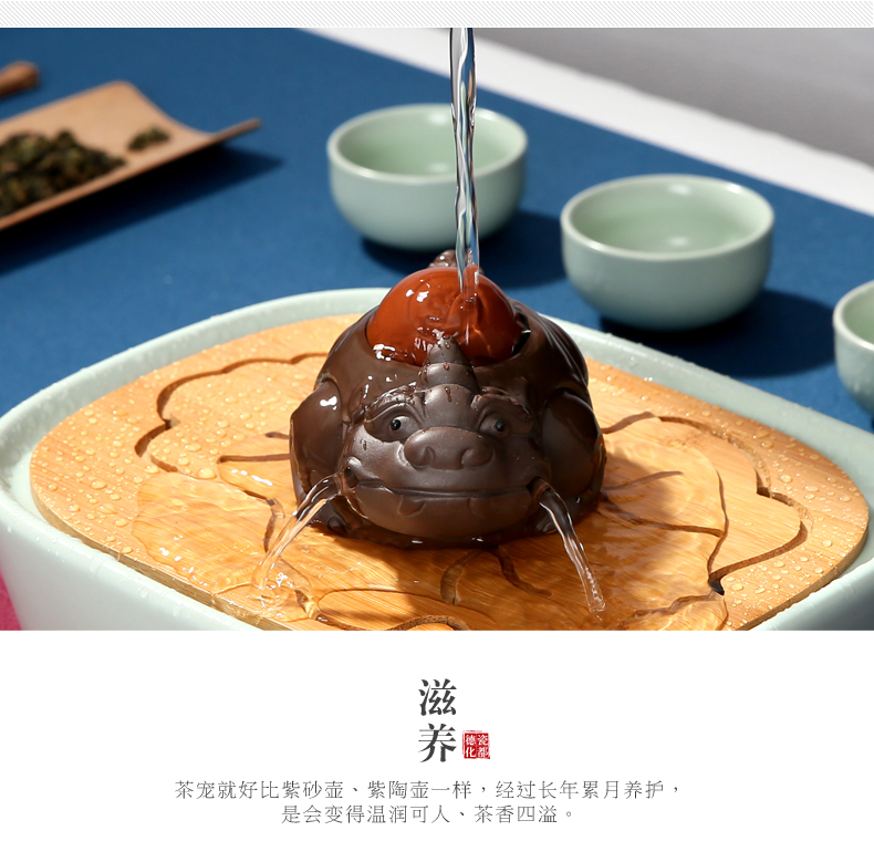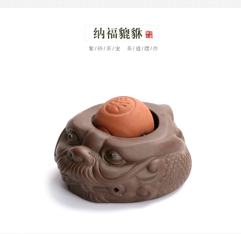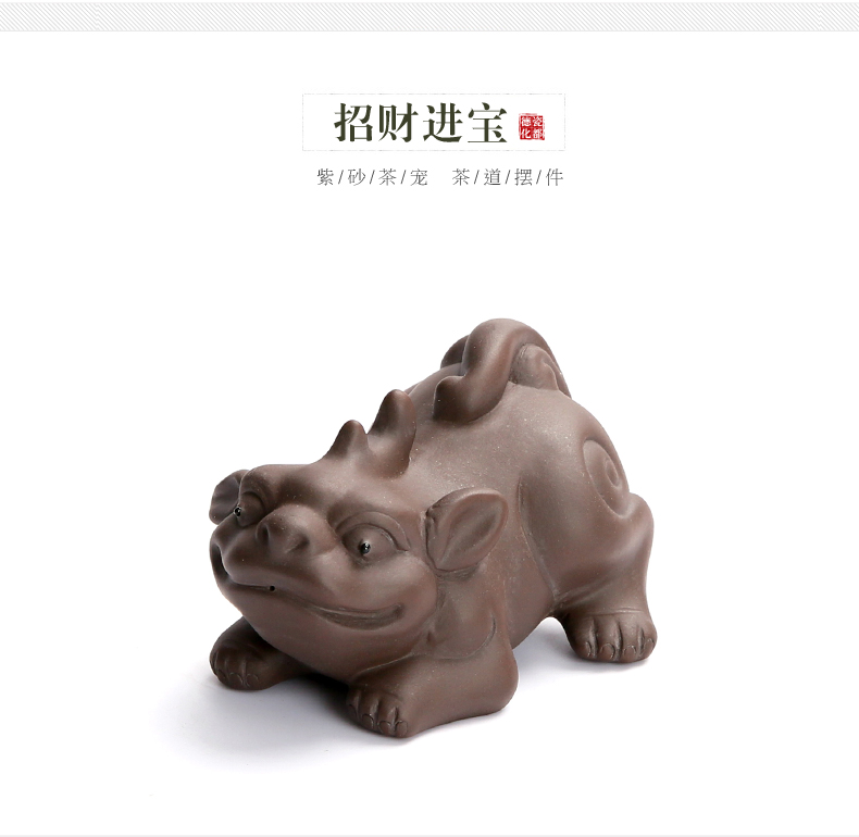01招財貔貅家用迷你茶寵紫砂貔貅招財金蟾精品茶具配件創意小擺件茶玩