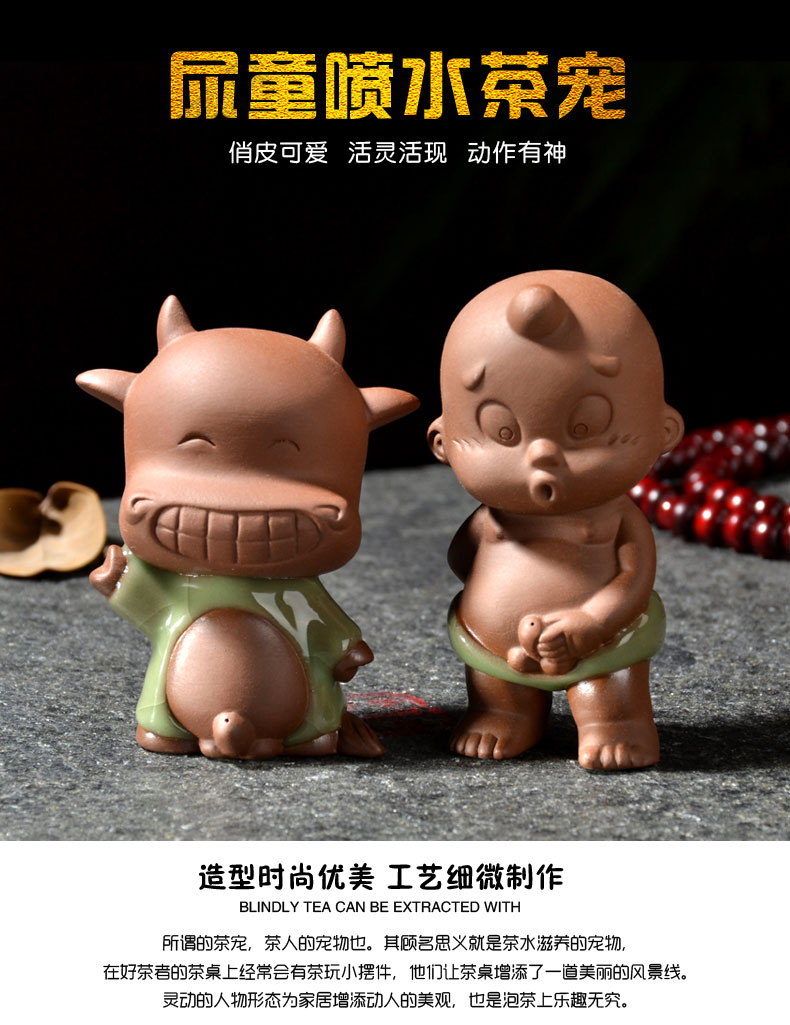 淘氣小土豆【可撒尿】噴水茶寵擺件創意可養宜興紫砂紫泥動物個性禪意可愛尿娃人物趣玩