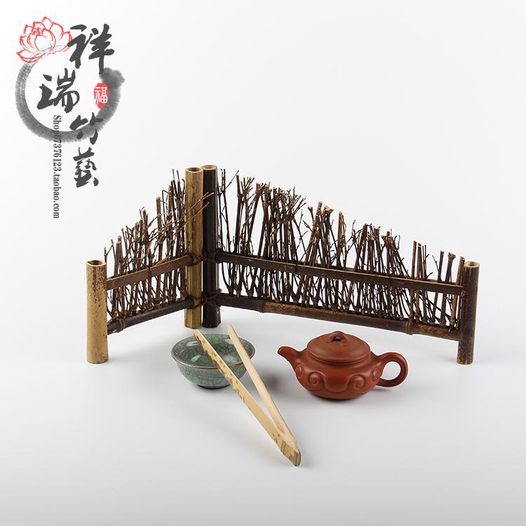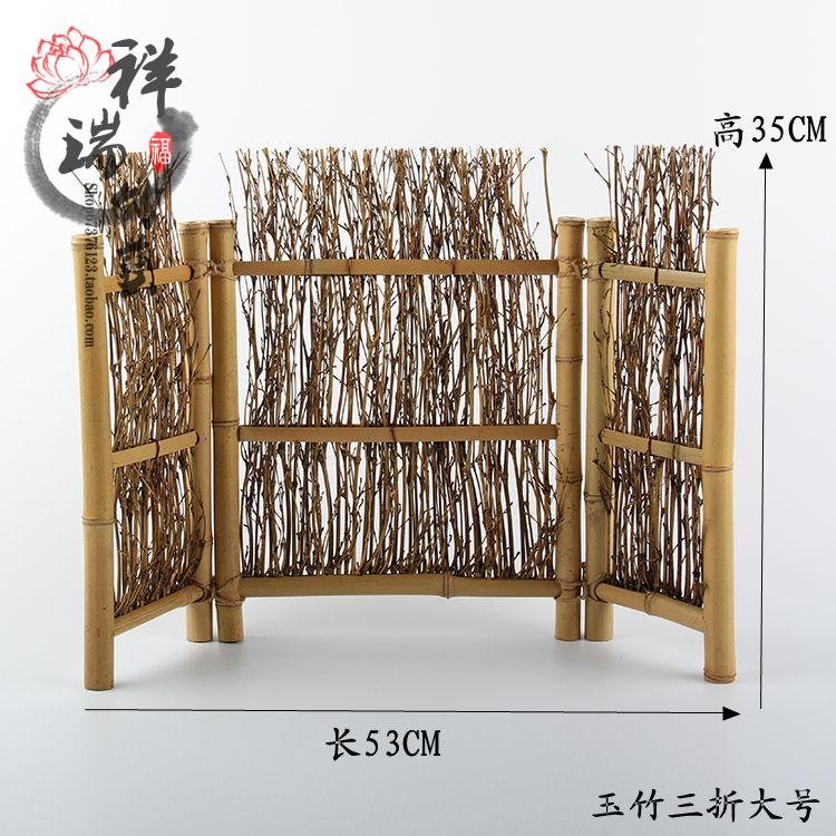 三折小總長36CM*高22CM手工編織紫竹籬笆 茶道擺件屏風柵欄 圍欄 茶臺裝飾 茶道零配