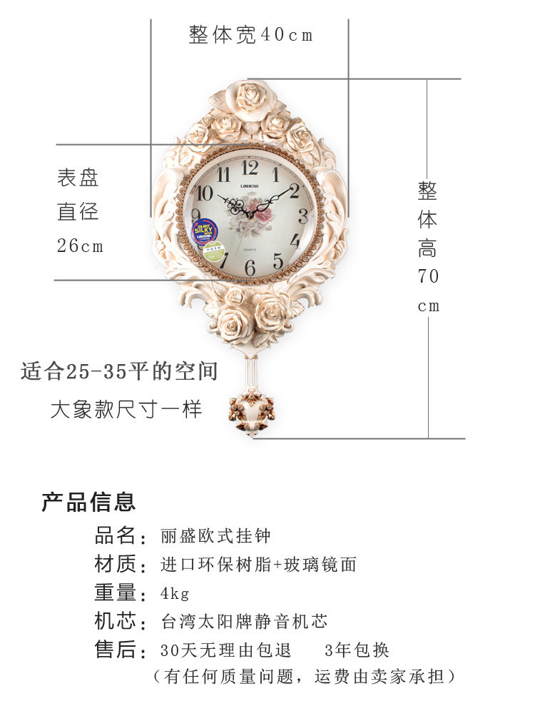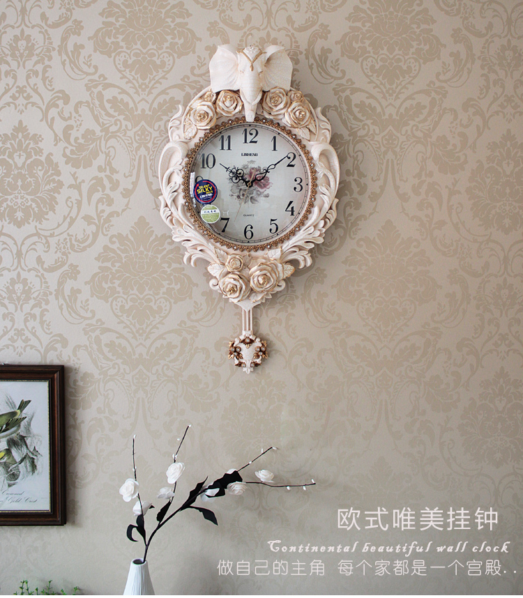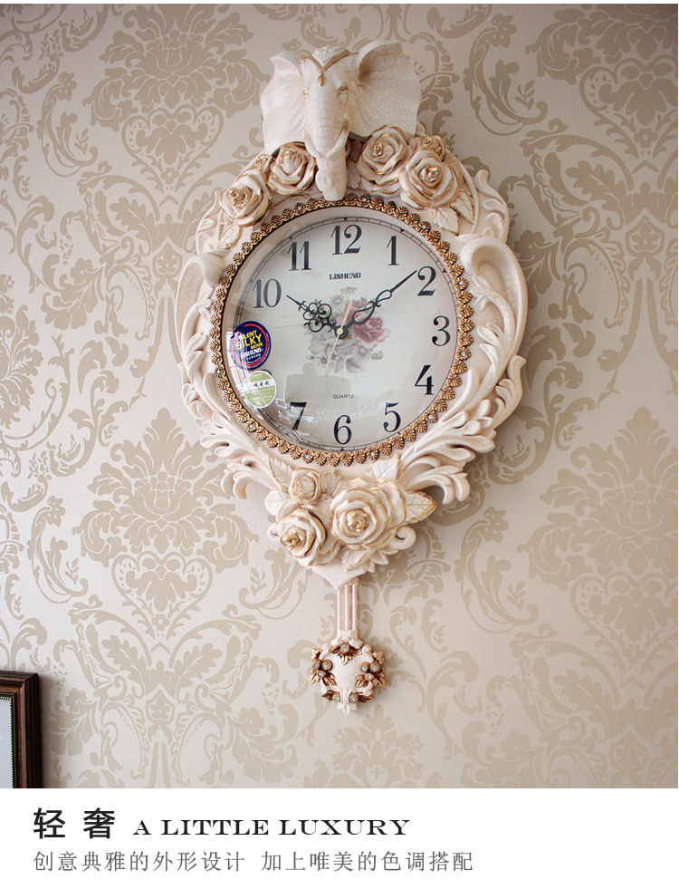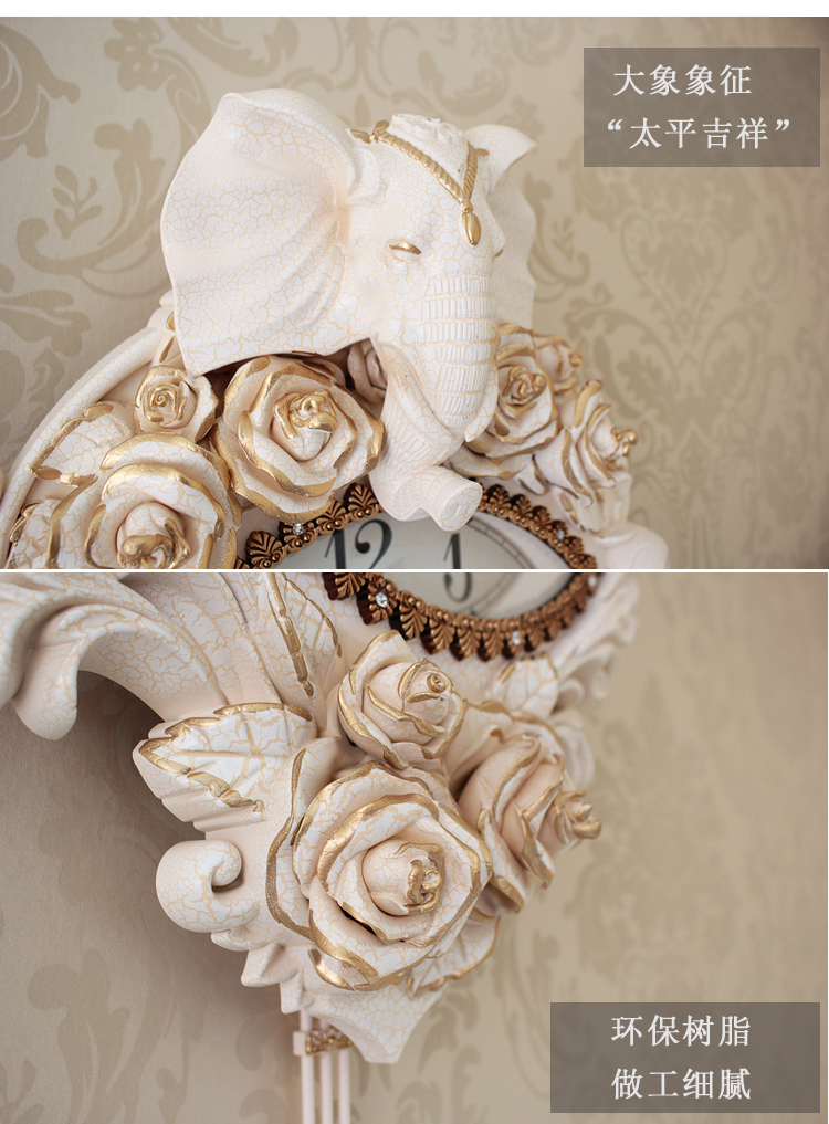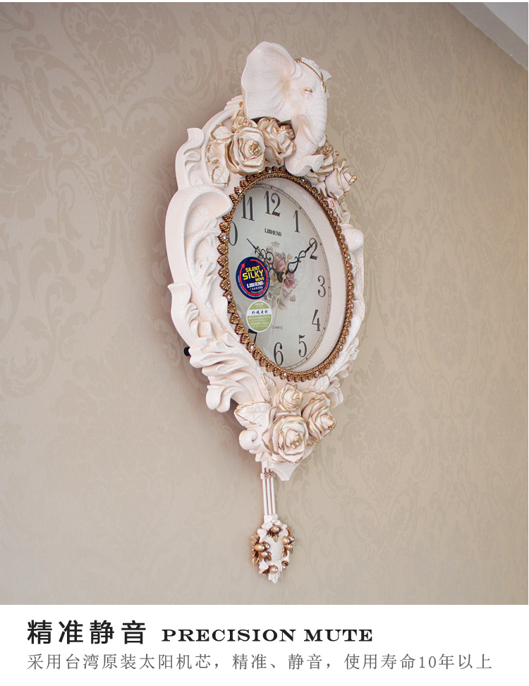 大象20英寸掛鐘歐式客廳裝飾鐘靜音石英鐘創意鐘表壁鐘家用時尚大廳掛表大號