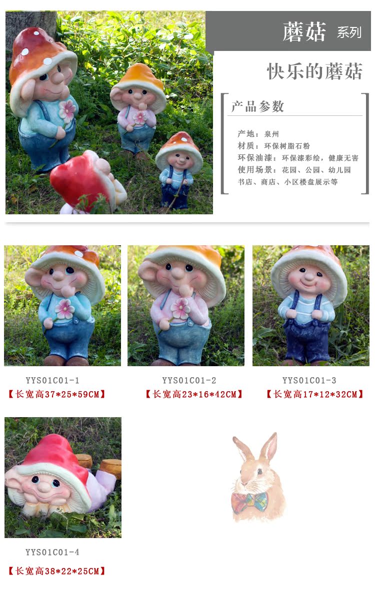 YYS01C01-1別墅庭院園林景觀草坪幼稚園戶外樹脂工藝品雕塑蘑菇精靈擺件