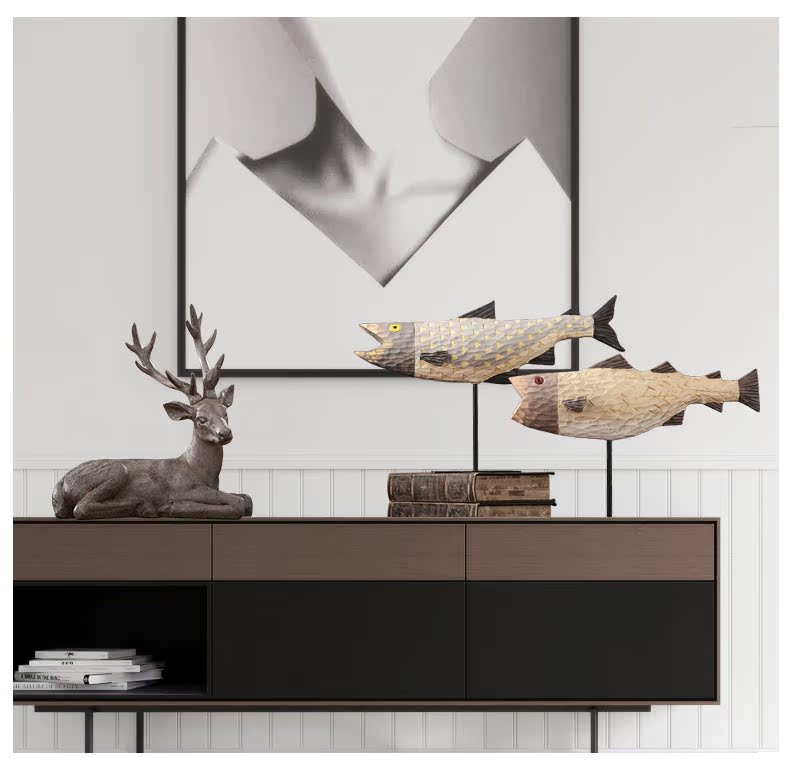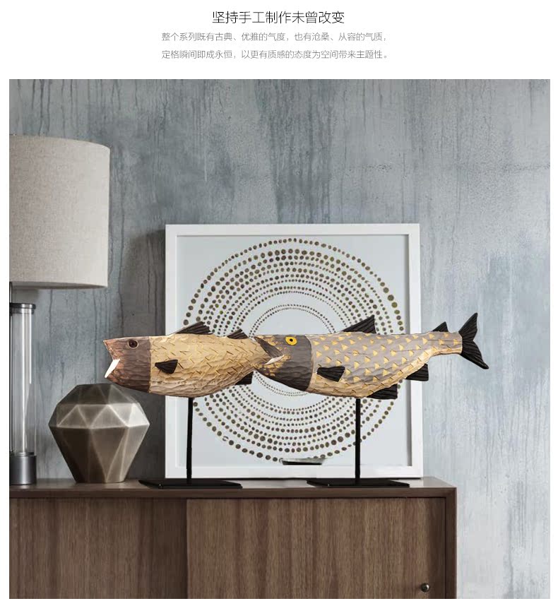 大魚北歐家居裝飾品金龍魚擺件 辦公室客廳酒柜樣板房軟裝樹脂工藝品