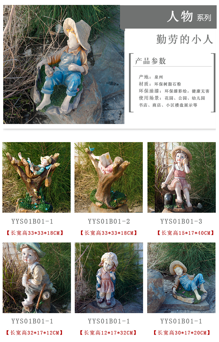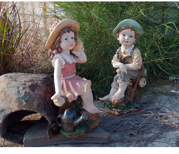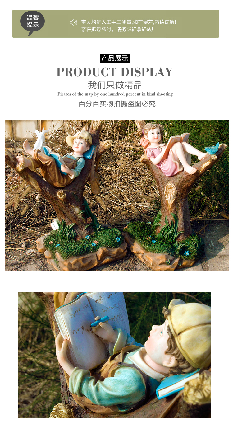YYS01B01-1讀書男孩女孩園林景觀雕塑田園擺件戶外工藝家居招財風水樹脂禮品