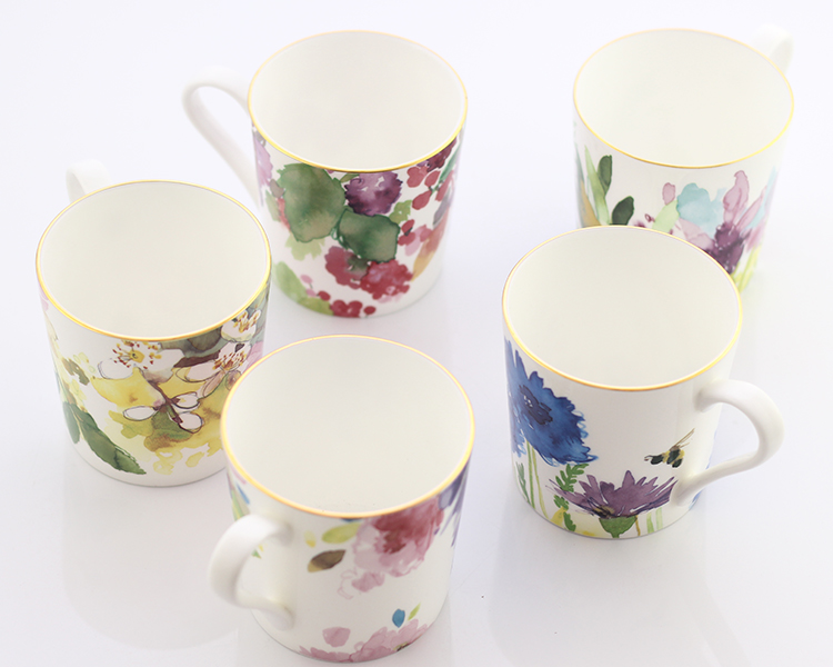 D款黃金版英國骨瓷咖啡杯水杯子陶瓷鄉村田園創意藝術馬克杯套裝帶勺