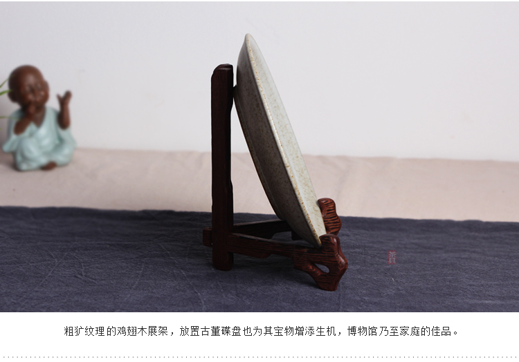 10寸雞翅木展架(特大號)茶道零配實木普洱茶餅展架子展示架支架古董碟盤架復古茶托擺件