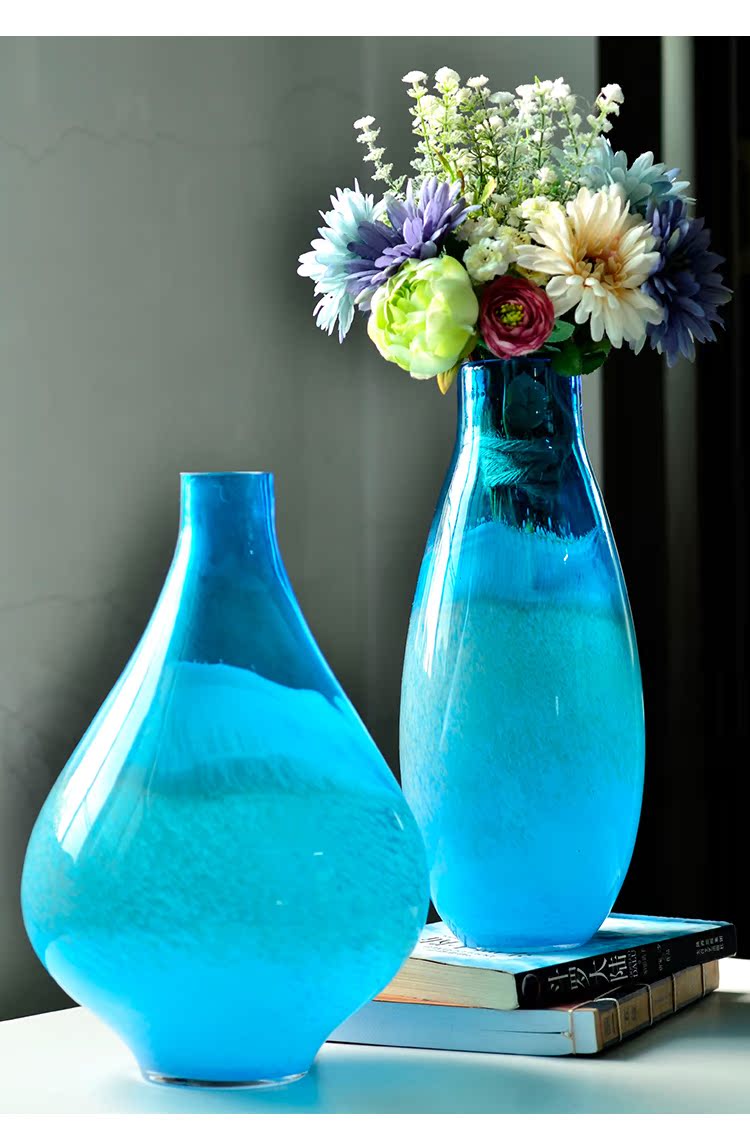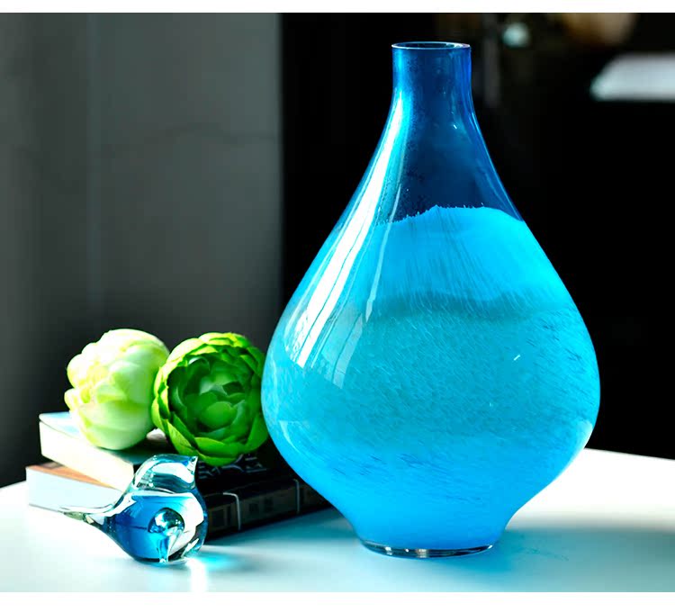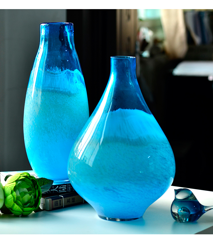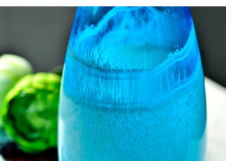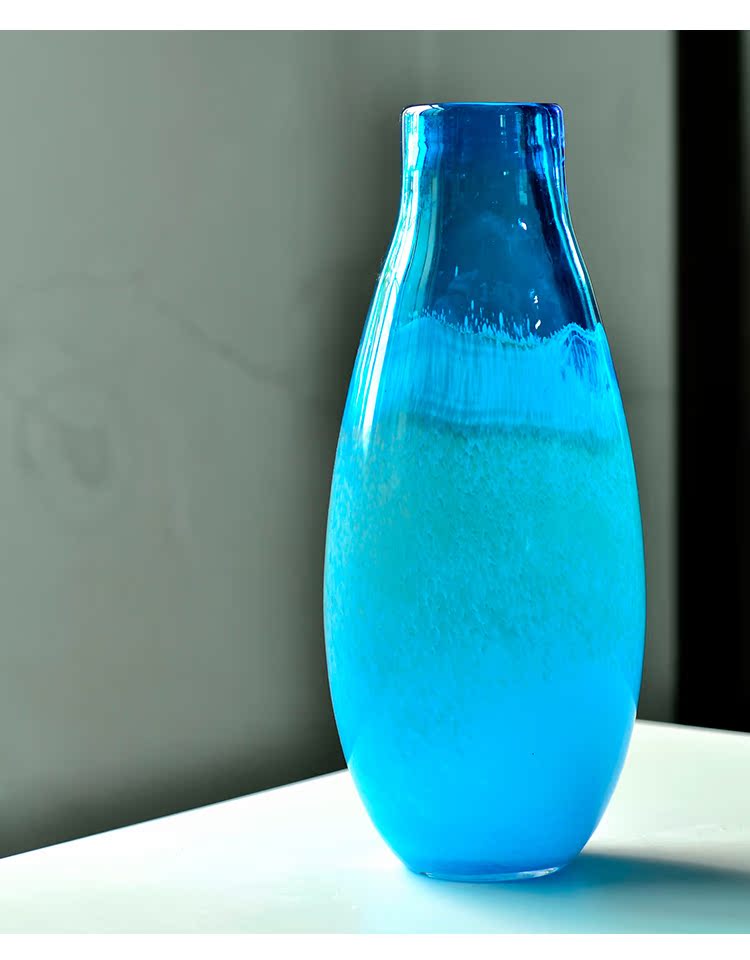 大號 長寬高:14*14*34cm琉璃花器有色玻璃花瓶 地中海藍色工藝品 客廳藝術擺件家居裝飾品