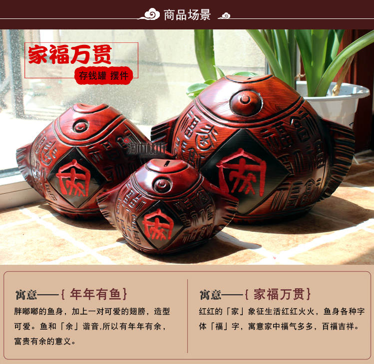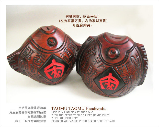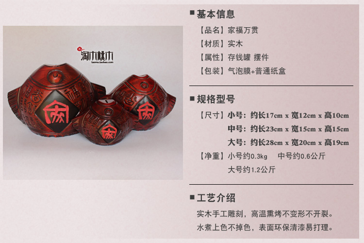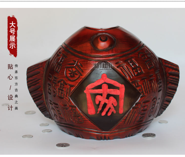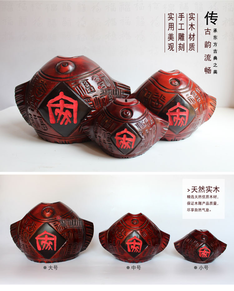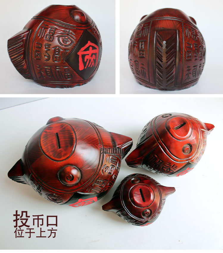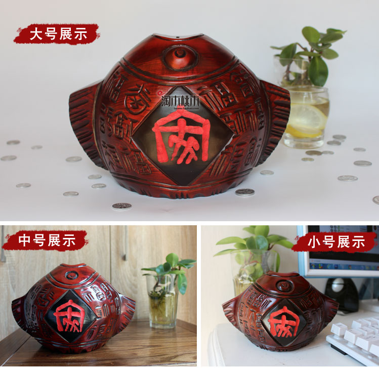 大號(28X20X19厘米)中式木存錢罐福家送閨蜜結婚創意禮物酒柜裝飾品擺設書房儲蓄罐