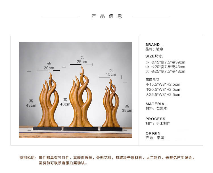 大 長25*寬7.5*高48cm境泉 東南亞實木火焰臥室擺件 擺設品 樣板房客廳軟裝家居裝飾品