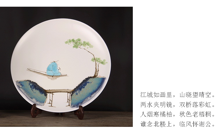 下江南裝飾盤(大)景德鎮手繪陶瓷花瓶禪意裝飾盤擺件 新中式廳博古架玄關花插干花