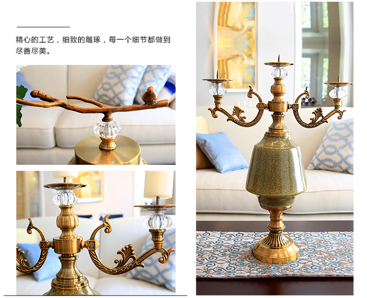 三頭燭臺歐式創意樣板間客廳餐廳裝飾品擺設 陶瓷花瓶仿真花組合套裝擺件