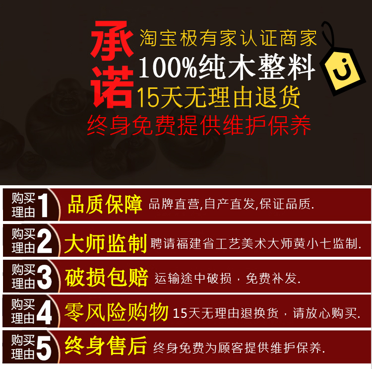 | 本公司大部分商品6一10天到貨。不接急單。急單的客戶請不要下單。感謝諒解與合作! 名稱:招財對象 木料:花梨木 品牌:品盛 尺寸長寬高:18*12*16cm/18*9*13cm/16*8*11cm 工藝:手工雕刻打磨 包裝:定制高檔禮盒 品牌產地:仙游—中國古典工藝之都 適用范圍:喬遷開業送禮 家居擺設 店面擺設 所有寶貝均為實物拍照,由于光線、拍攝背景、拍攝器材以及顯示器的不同,照片與實物色彩會略有差異,請以收到實物為準。