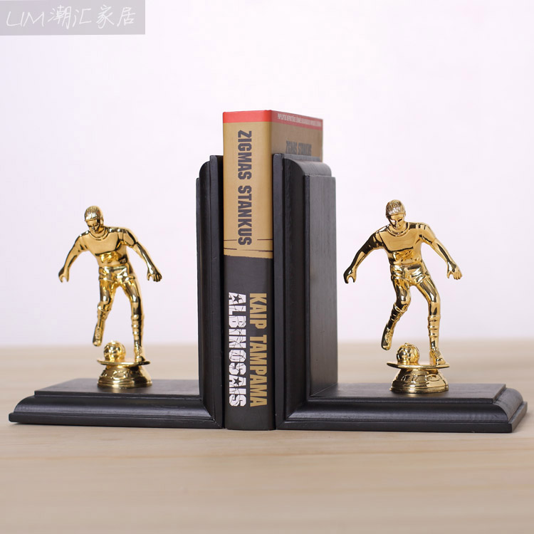 一對的價格創意足球運動員書靠加厚實木書立書擋現代歐式書夾書房擺件樣板間