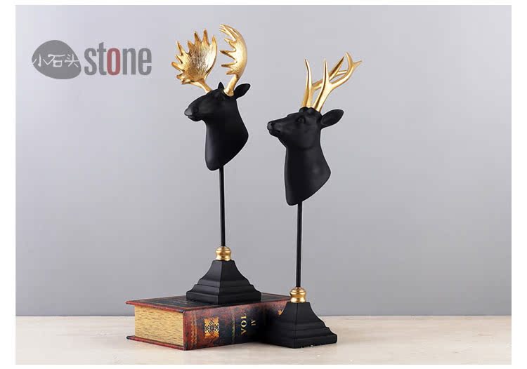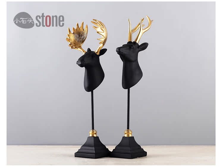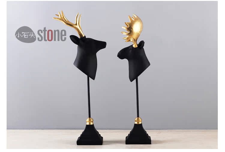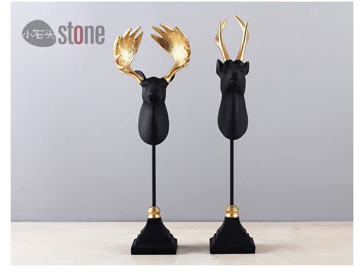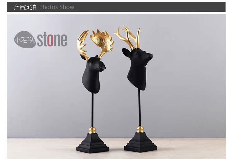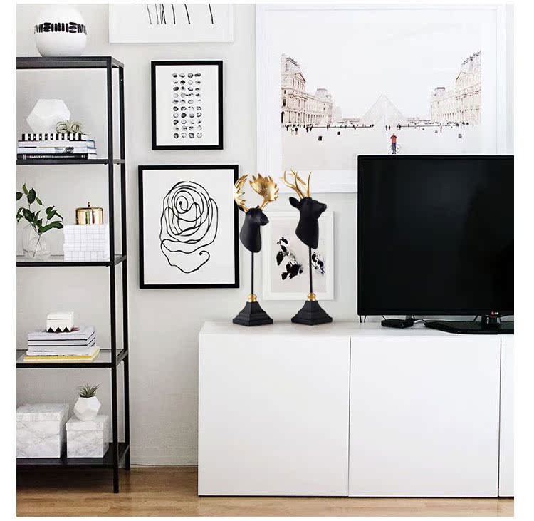 一對 型號165北歐簡約創意金角麋鹿頭擺件家居裝飾品客廳電視柜酒柜擺設工藝品