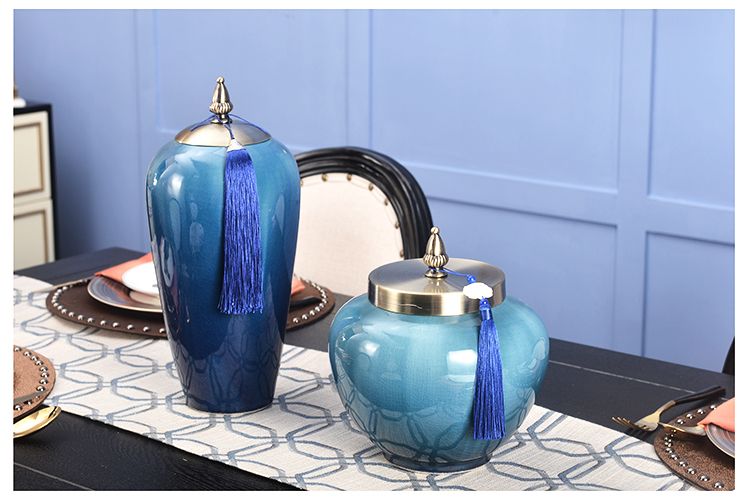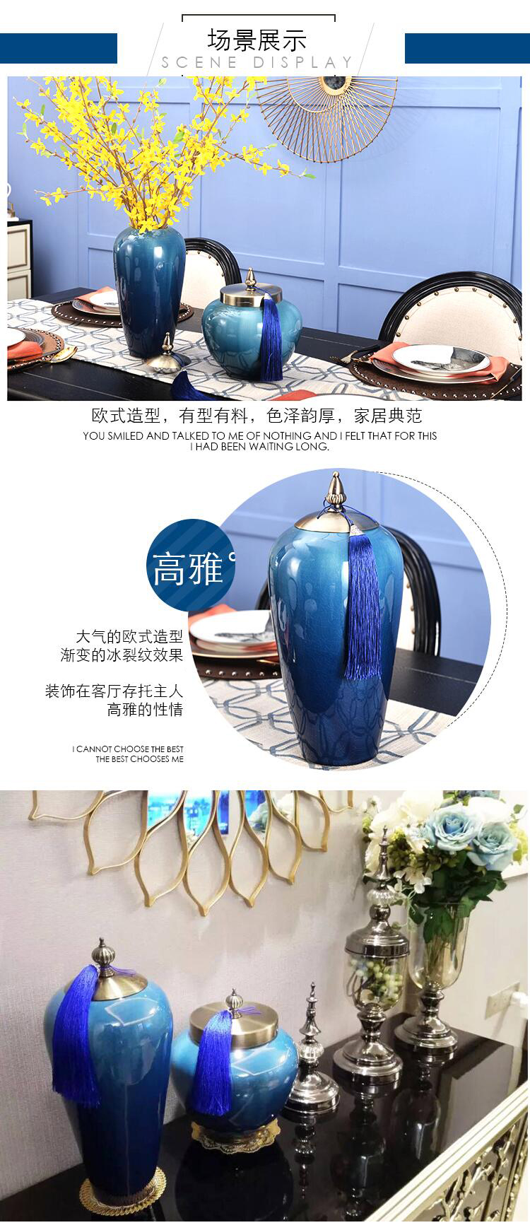 一對(不含花)新中式靚蘭釉色冰裂陶瓷花瓶擺件 歐式家居電視柜餐桌花藝套裝