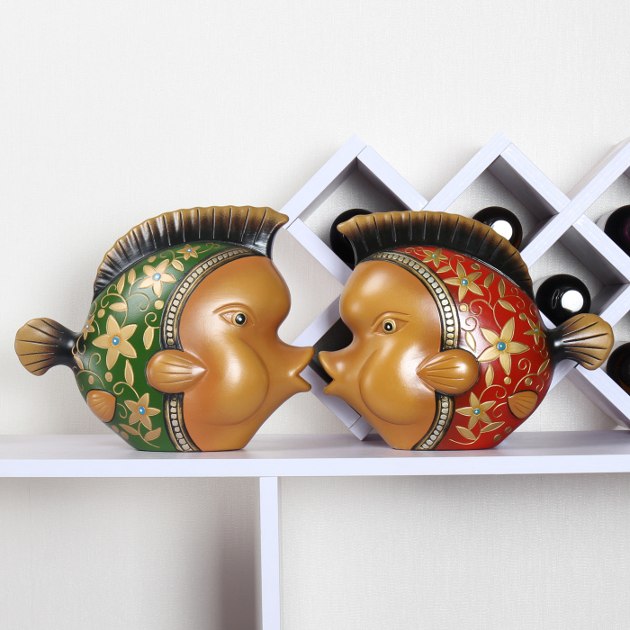 一對*福祿魚*福祿手工美式酒柜裝飾品擺件閨蜜結婚禮物創意高檔新婚禮品個性對魚工藝品