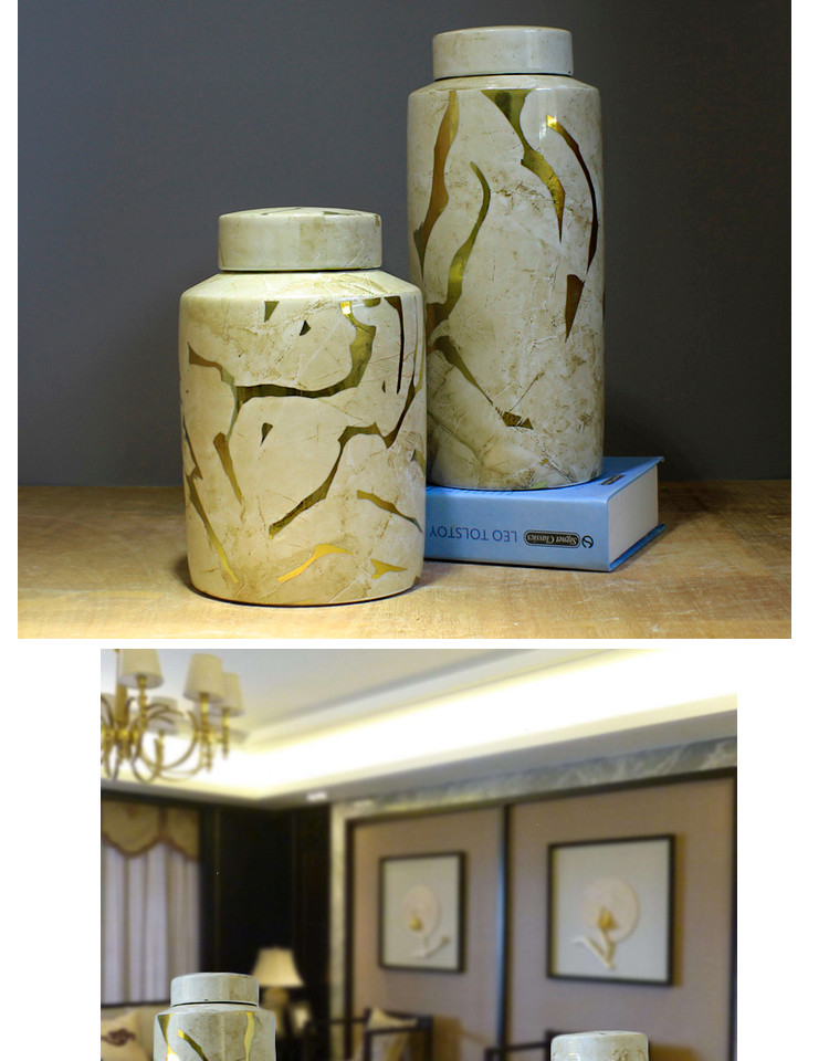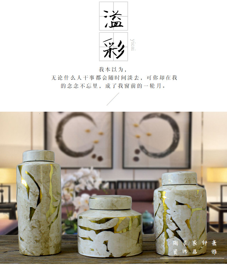 一套三件新中式家居裝飾現代中式大理石紋陶瓷罐三件套客廳酒柜裝飾品擺件