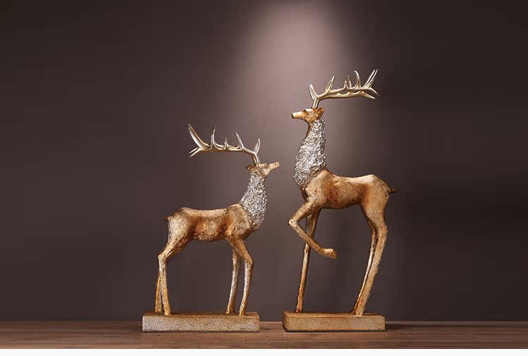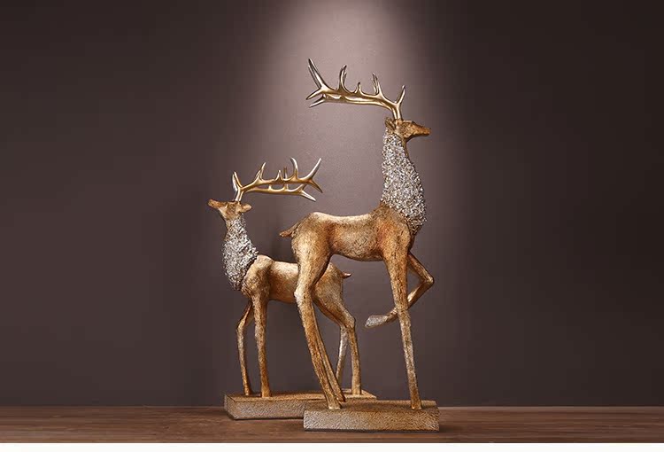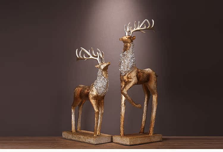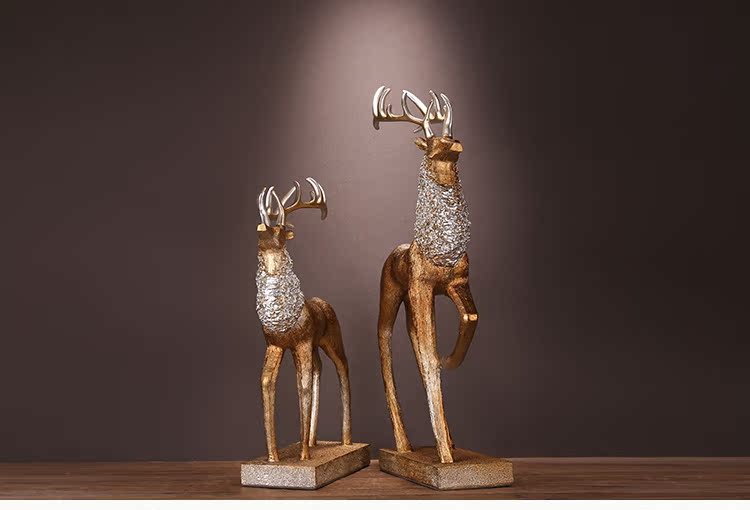 XL-W8000-262 金色鹿簡約現代樹脂擺件家居家飾裝飾品工藝品創意麋鹿招財軟裝客廳書房