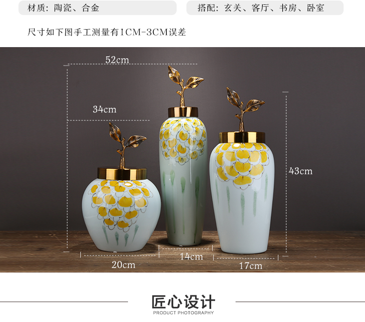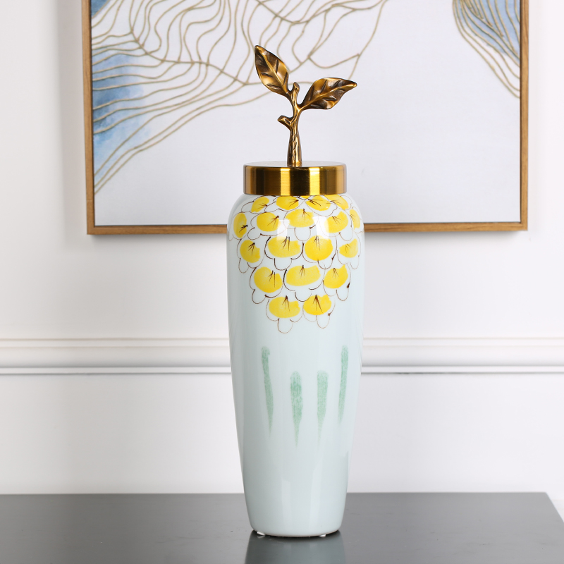 YH6483CA+B+C新中式家居陶瓷花瓶仿真花藝插花套裝擺件歐式客廳裝飾品喬遷禮品