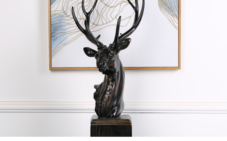 W8000-212 XL家居飾品擺件 歐式樹脂麋鹿頭擺件 復古鹿角裝飾品創意擺設品客廳