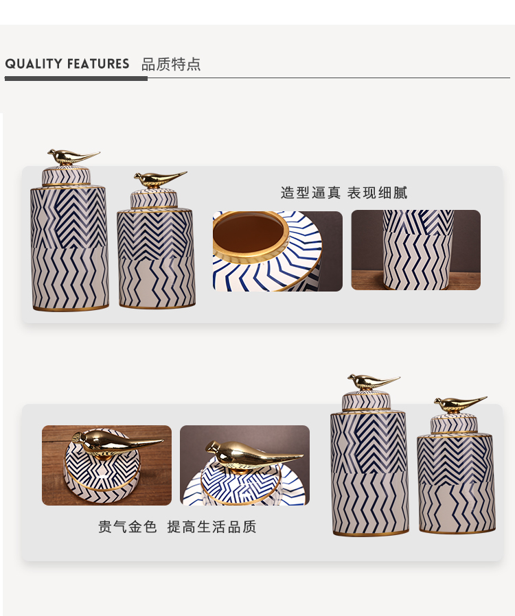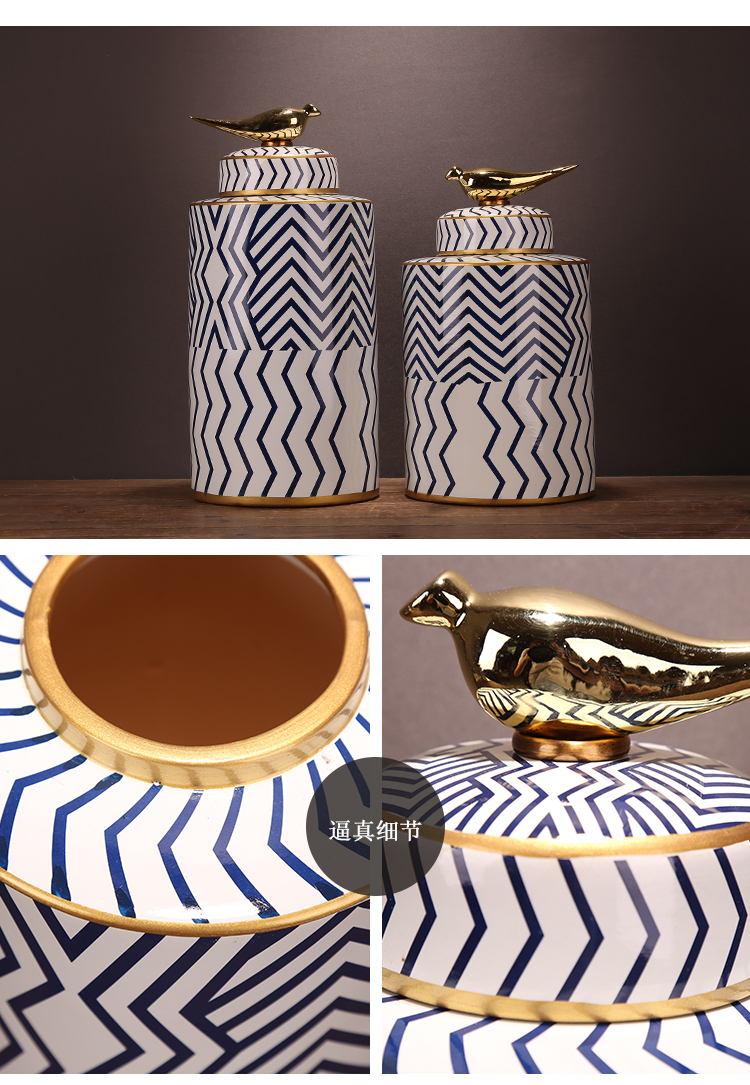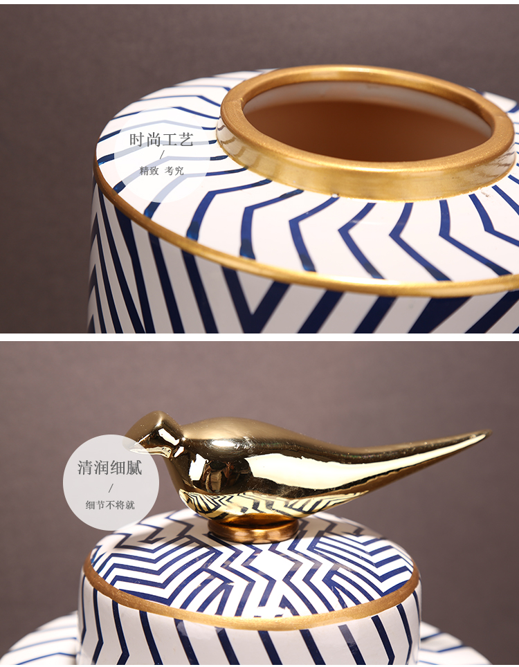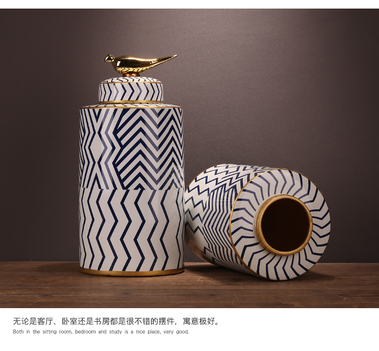 VC6152-OY B新中式新古典客廳陶瓷擺件花瓶創意水紋儲物罐工藝品玄關裝飾品