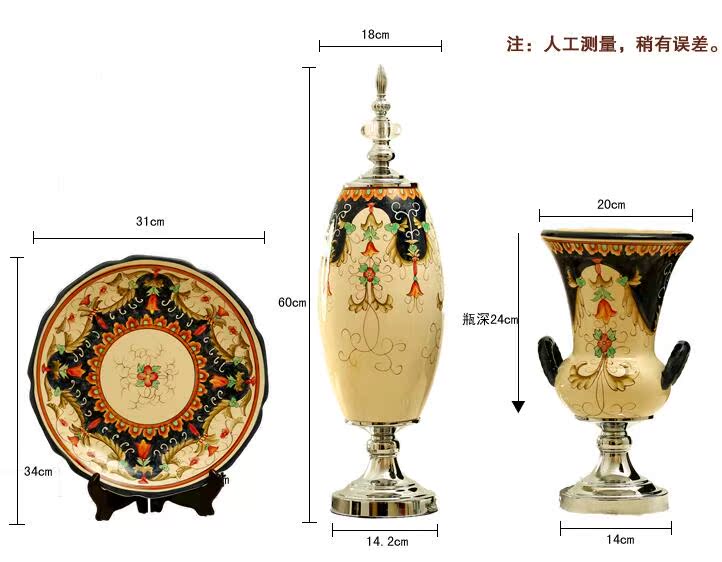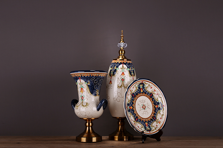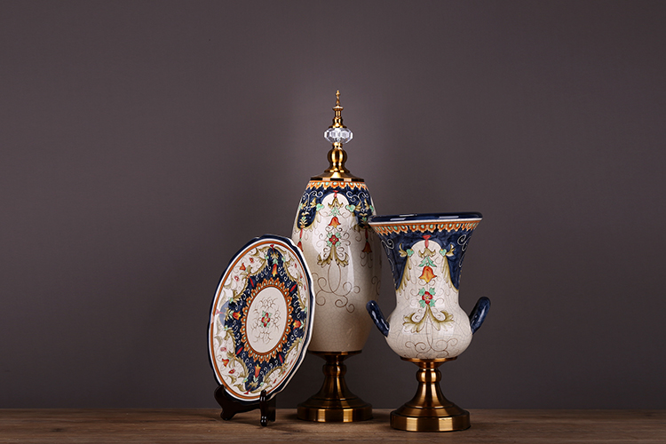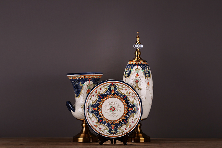 QIQI308-12花盤子帶架-金創意新古典花瓶擺設美式歐式復古家居客廳裝飾陶瓷禮品三件套擺