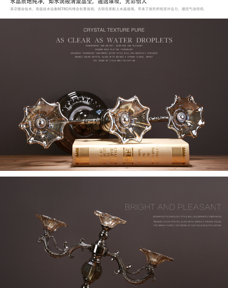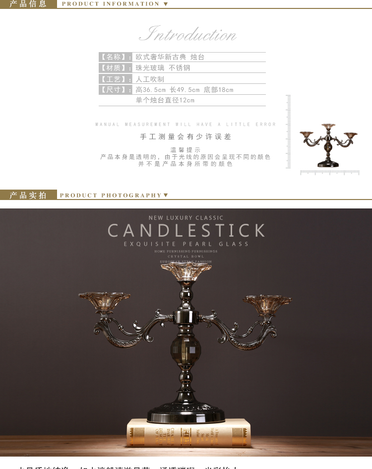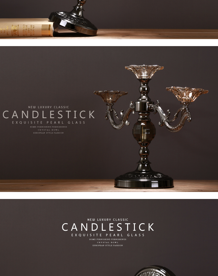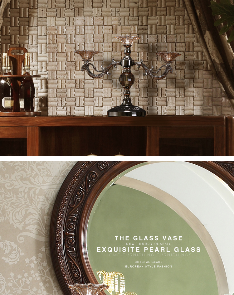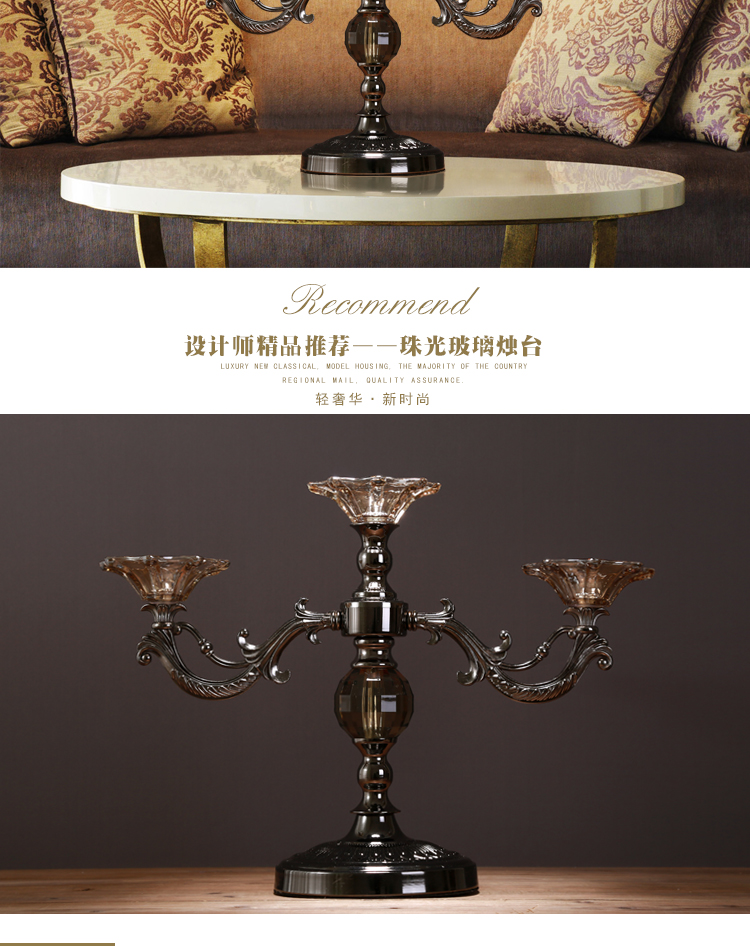 OY0520燭臺歐式浪漫復古擺件擺設現代創意柏克蘭新古典水晶感珠光玻璃燭臺