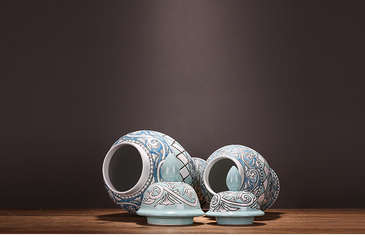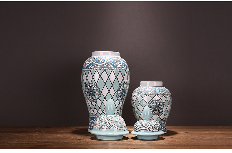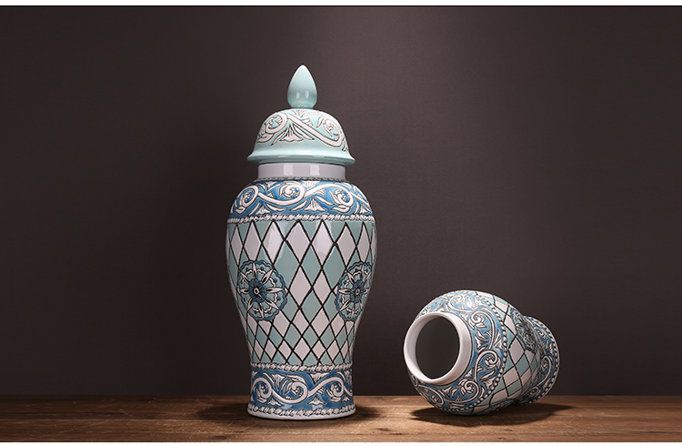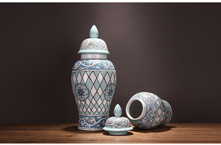 MK031-1小號LB新古典儲物罐陶瓷罐裝飾品工藝品帶蓋電視柜客廳玄關軟裝歐式立體