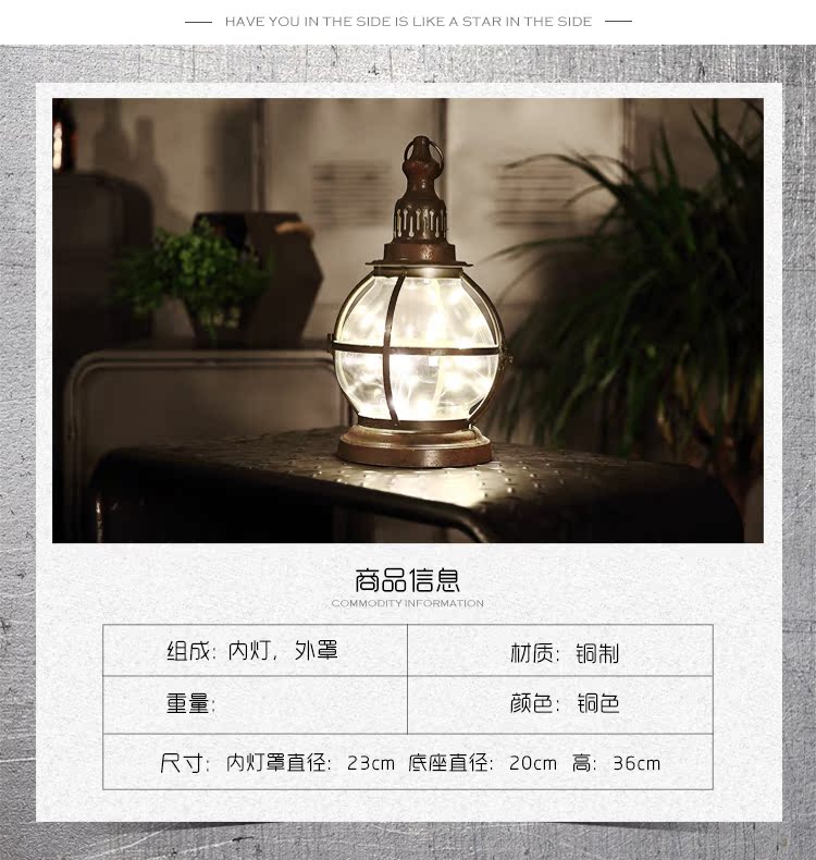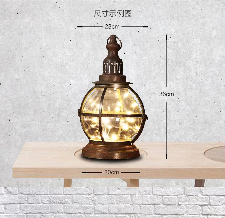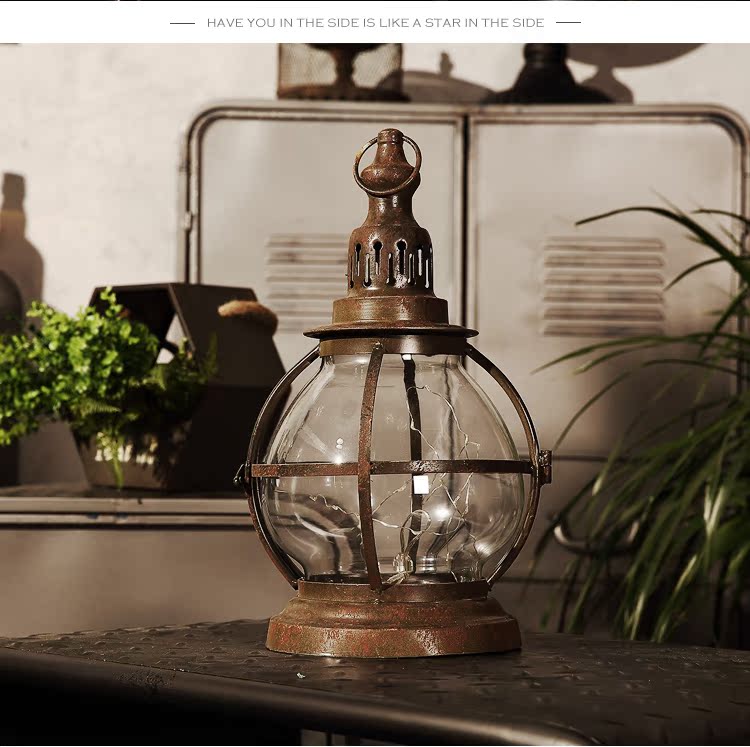 Loft工業風 復古做舊鐵藝風燈 餐廳酒吧裝飾品擺件 帶光源馬燈