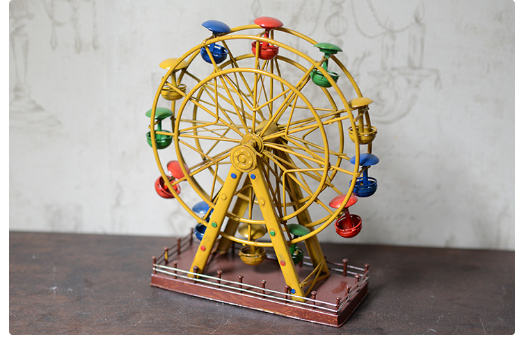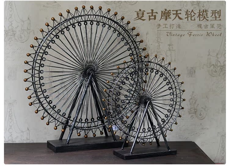 HX12-778特大號黑色復古鐵皮做舊鐵藝摩天輪模型拍照道具服裝店陳列家居裝飾禮物擺件