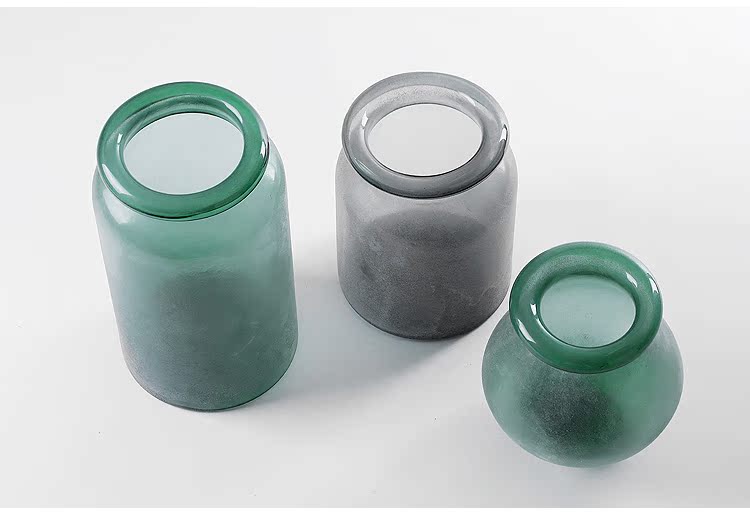 HJ640-40-H40磨砂綠A美式鄉村復古手工吹制磨砂玻璃花瓶擺件家居餐廳花插創意擺設裝飾