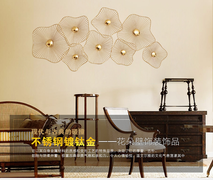 G款:金色現代創意不銹鋼壁飾墻飾會所客廳大型壁掛件中式酒店墻上軟裝飾品