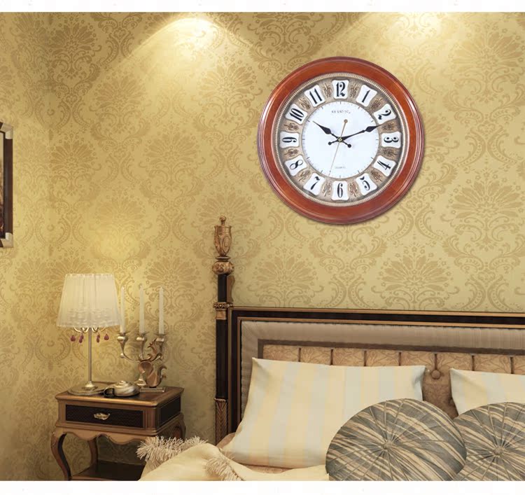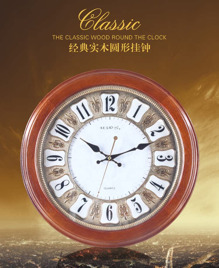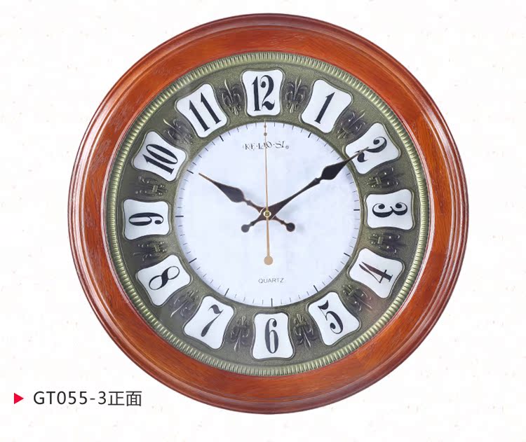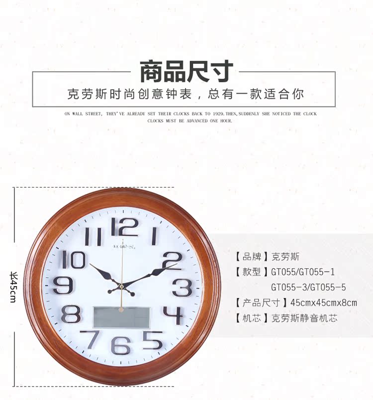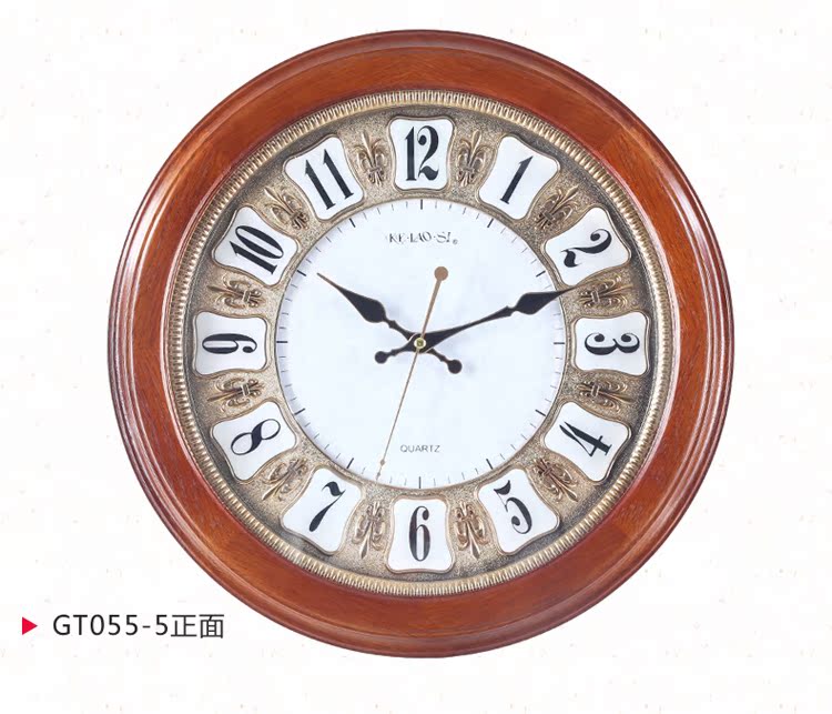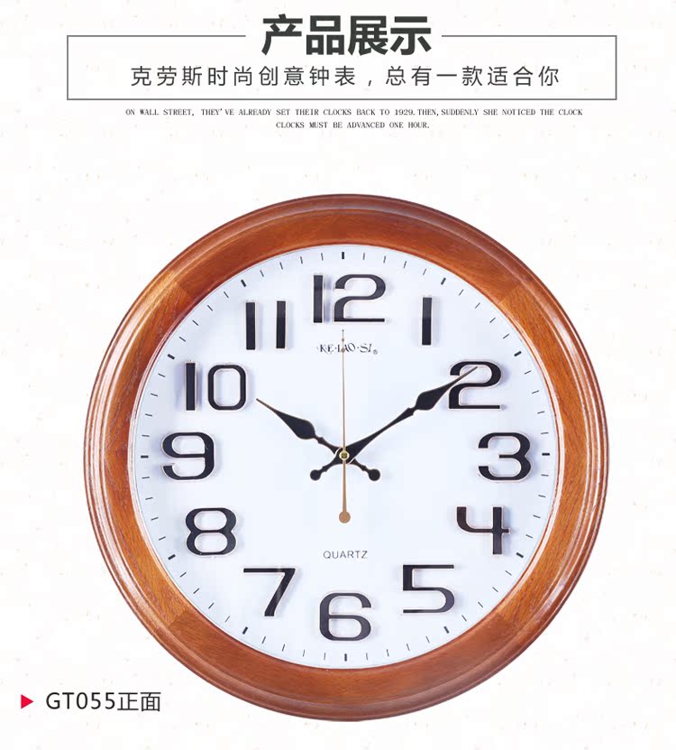 GT055簡約數字款18英寸克勞斯客廳實木圓形掛鐘歐式復古靜音羅馬數字簡約臥室石英鐘掛表