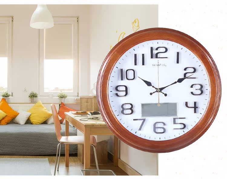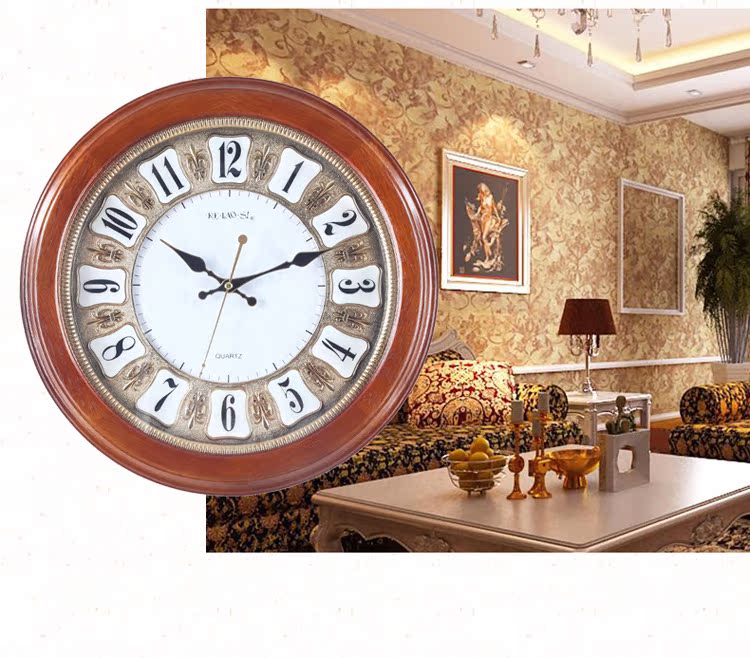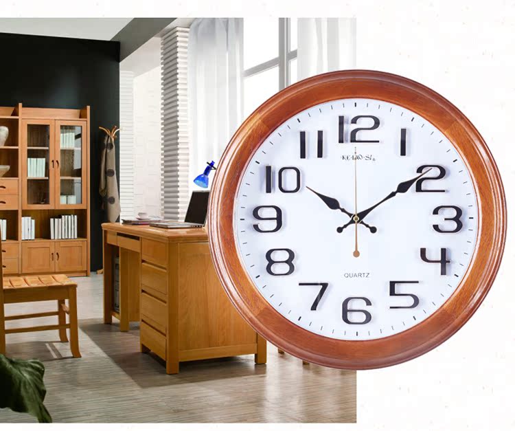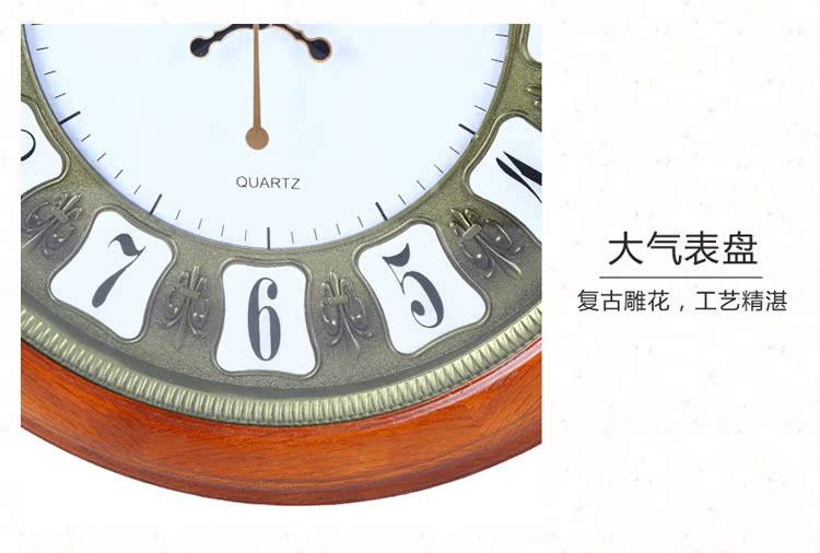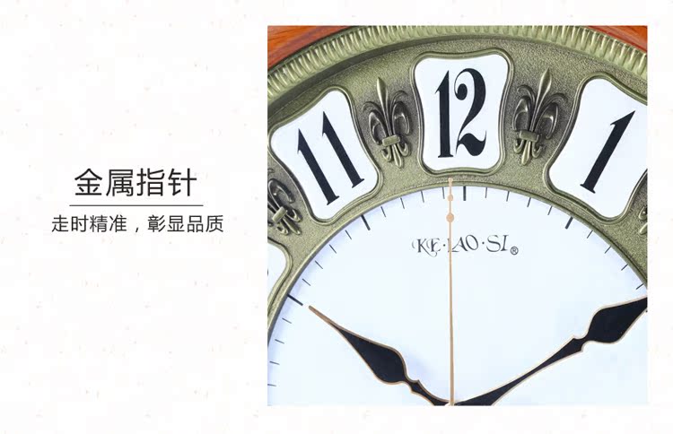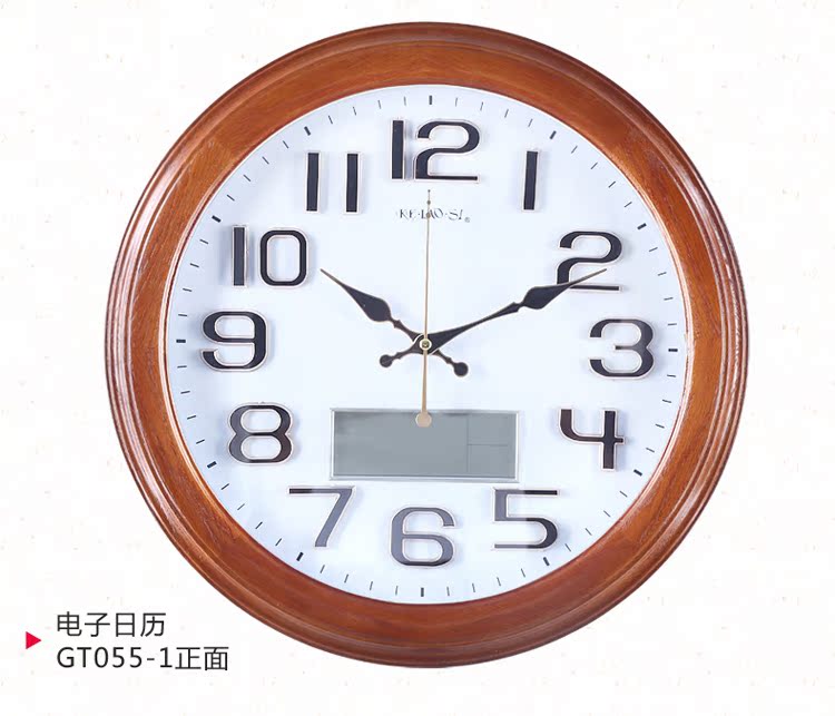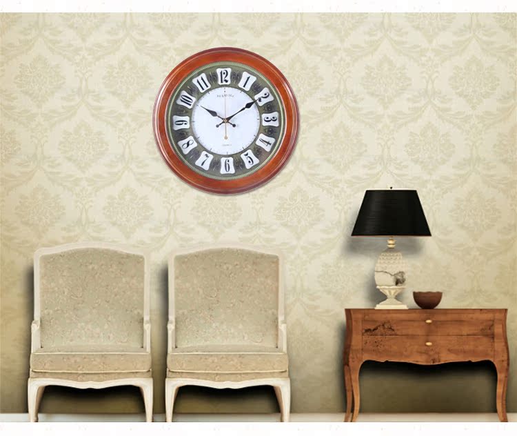 GT055簡約數字款18英寸克勞斯客廳實木圓形掛鐘歐式復古靜音羅馬數字簡約臥室石英鐘掛表