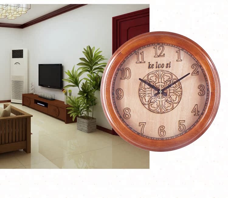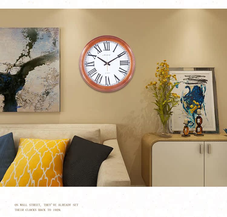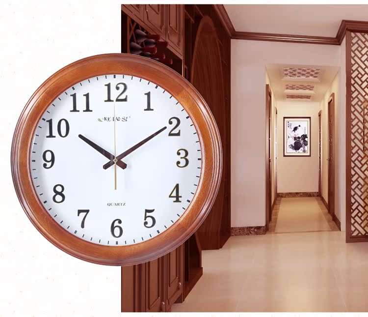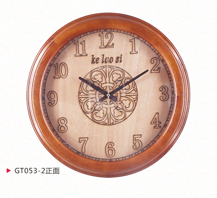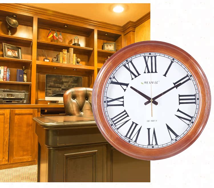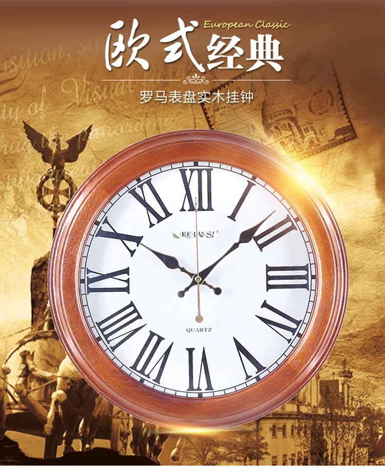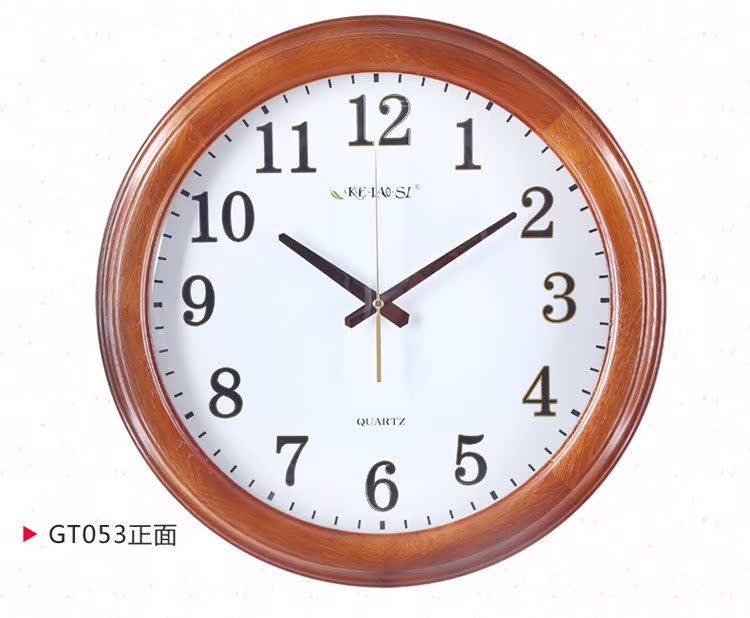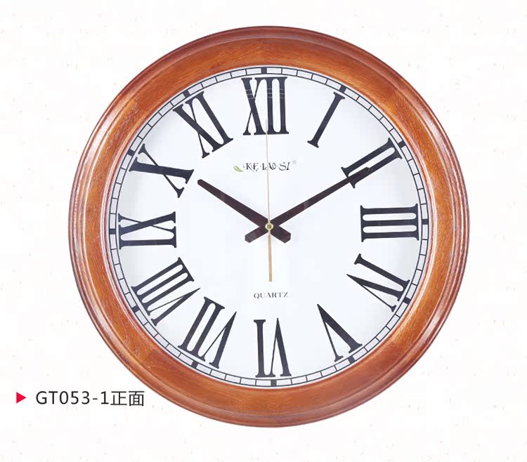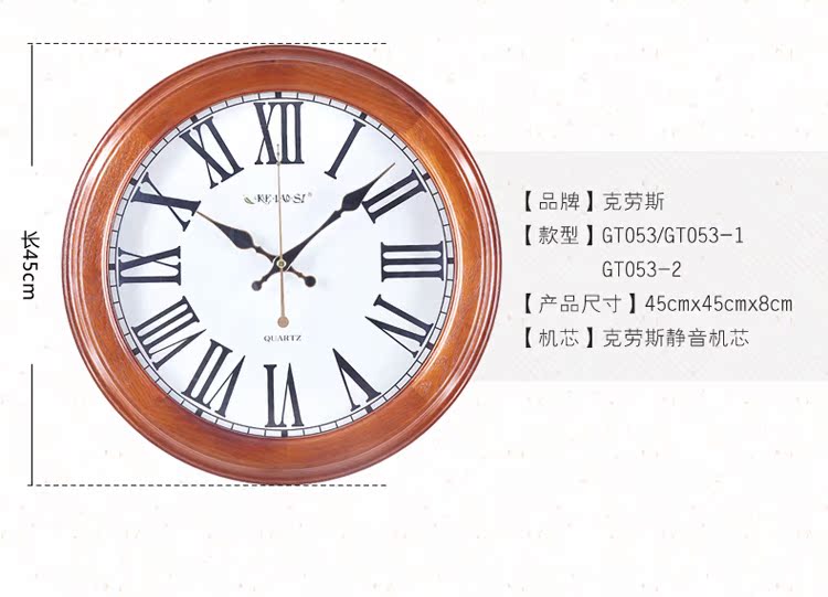 GT053簡約白底18英寸克勞斯實木靜音掛鐘歐式圓形客廳鐘表簡約創意石英鐘辦公室掛鐘表