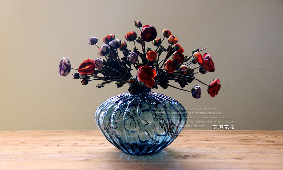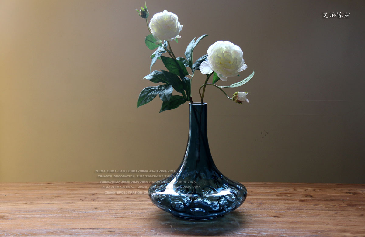 GB1338-38(高款)Z.M 美式鄉村 手工吹制大型典雅玻璃花瓶 玻璃擺件飾品