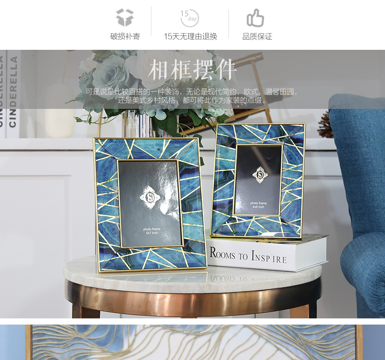 DS-3911-167寸現代簡約金屬相架創意相框擺件擺臺工藝禮品軟裝飾品擺設亮片相框