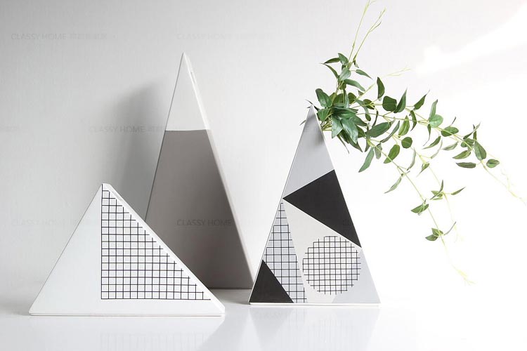 【推薦】:此款器形現代節約,采用黑白灰的幾何圖形,時髦經典,獨特的設計,既簡約又不乏精致的細節,技術和藝術融合, 此款與素雅的植物花卉搭配,清新可人……是餐桌,茶幾,等場所營造氣氛的推薦搭配!