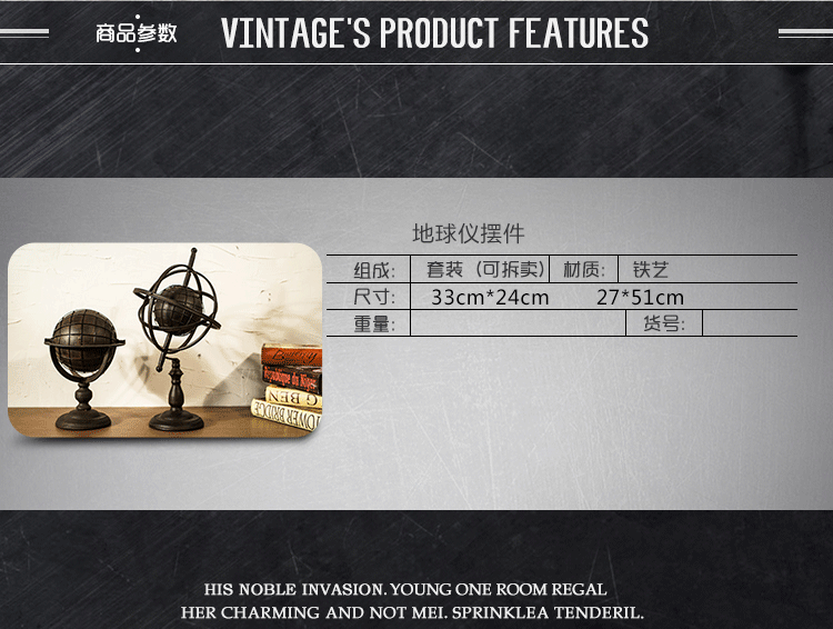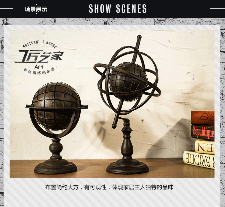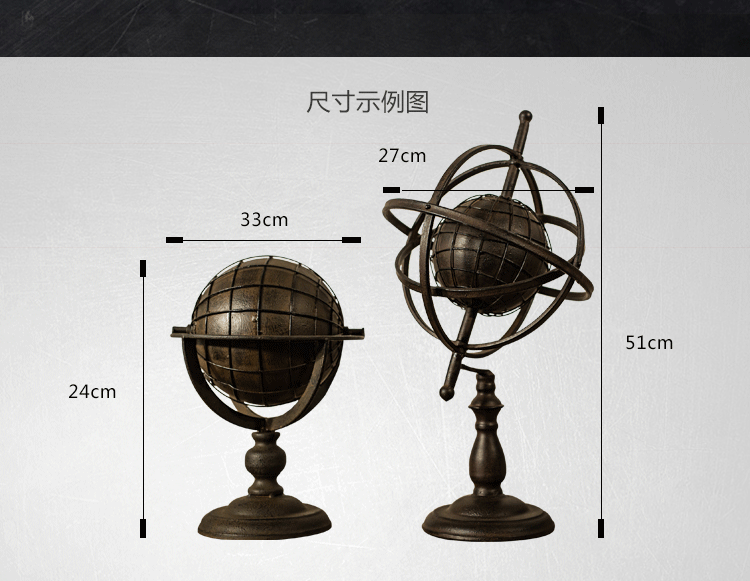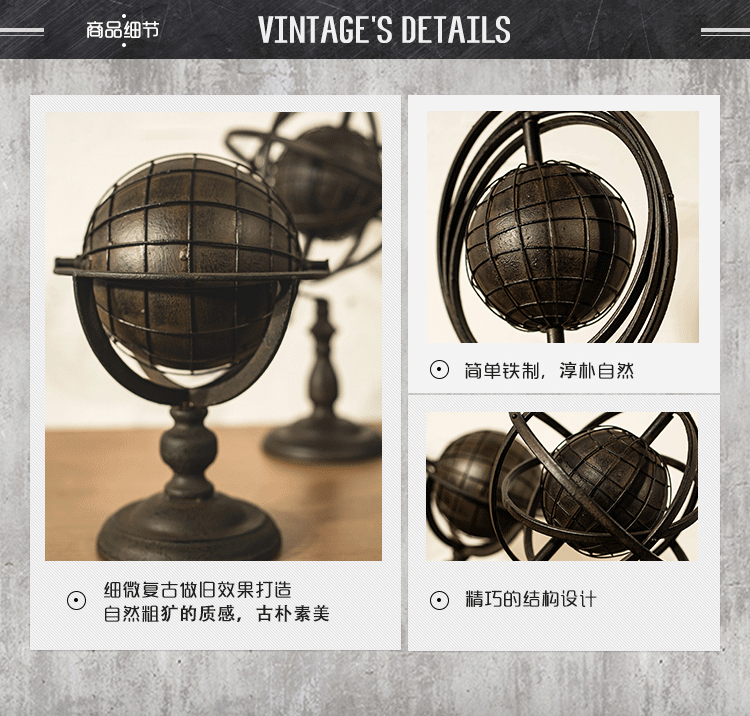 B款(大)Loft工業風格 復古懷舊 地球儀桌面擺件 金屬工藝品擺設 書柜擺飾
