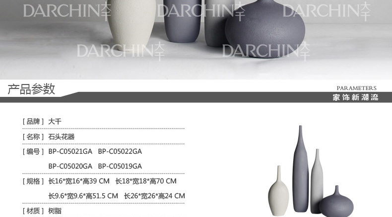 BP-C05022GA推薦北歐現代極簡創意小細口聚財花瓶臺面裝飾擺件石頭灰啞光花器