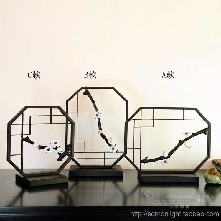 A款擺件新中式鐵藝擺件禪意玄關客廳辦公室工藝品復古民族風創意梅花擺件