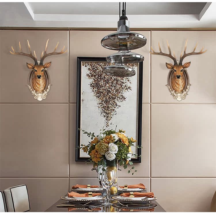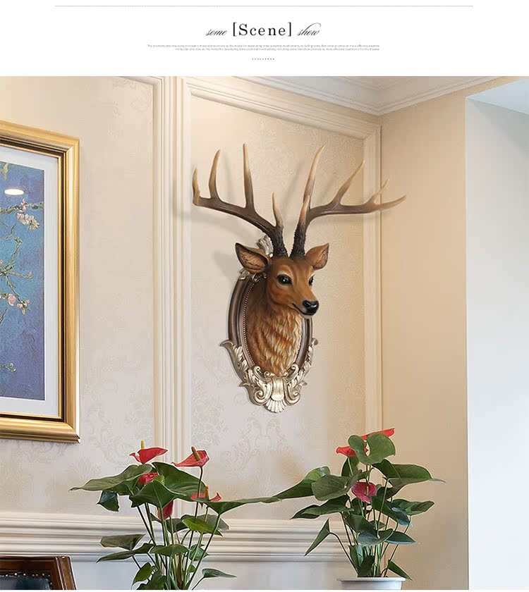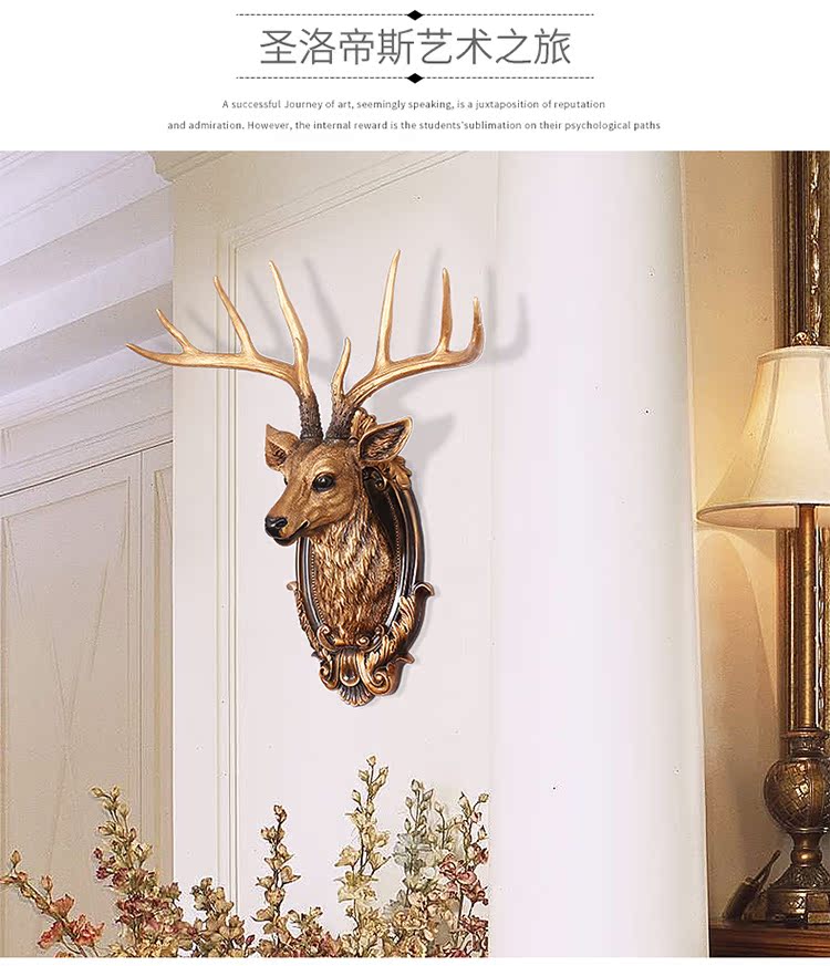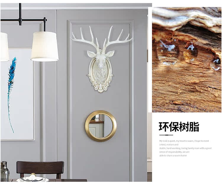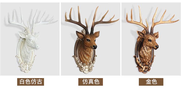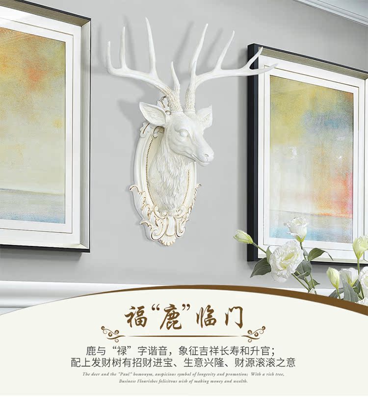BG-9970白色仿古歐式招財鹿頭壁掛客廳玄關創意裝飾品酒吧餐廳墻面動物頭壁飾掛件