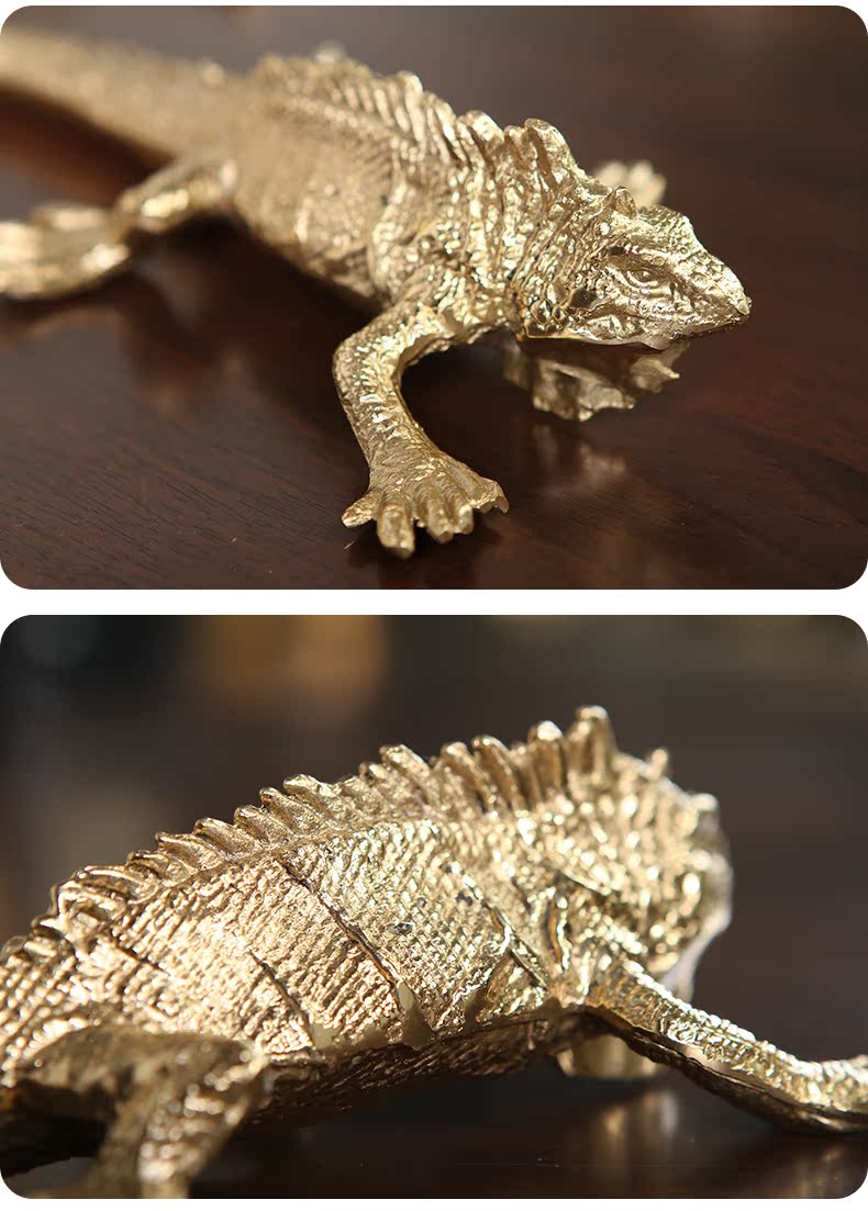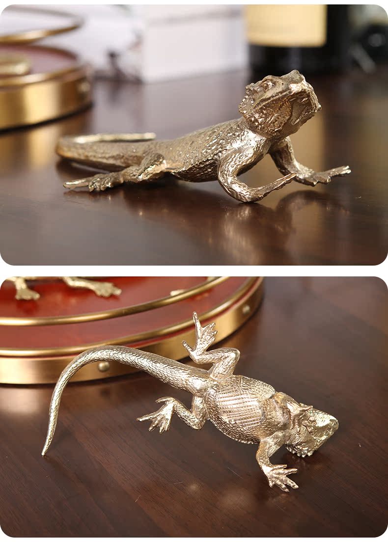 A款蜥蜴創意家居全銅做舊蜥蜴擺件客廳茶幾書房飾品歐式法式樣板間工藝品