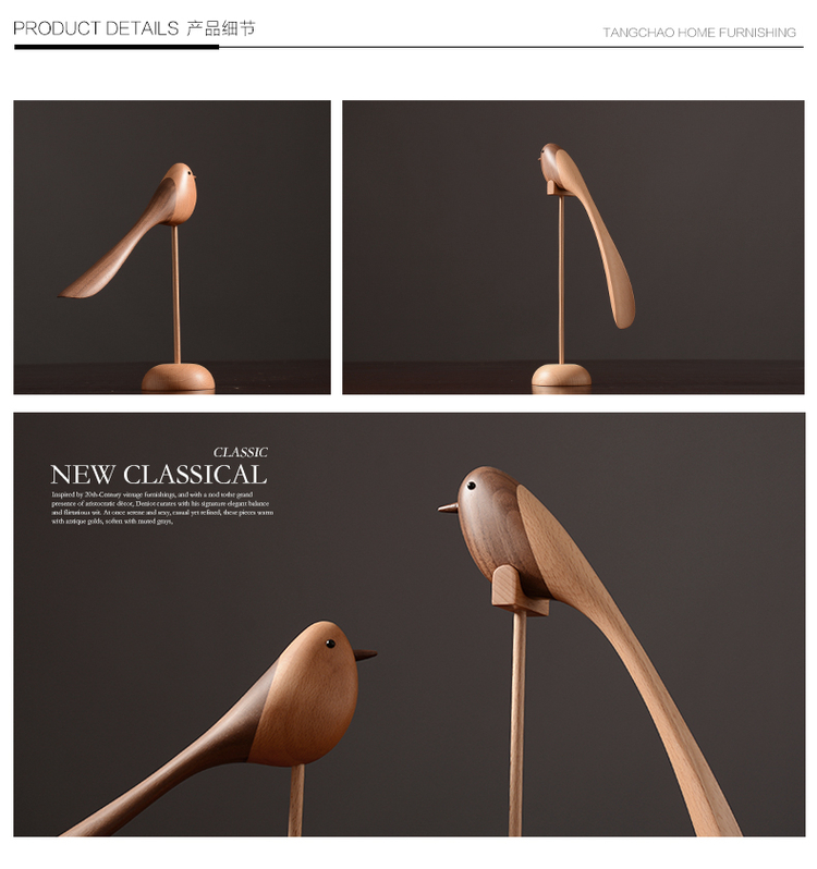 A款現代簡約北歐實木制小鳥 家庭室內軟裝樣板房酒柜裝飾品擺件