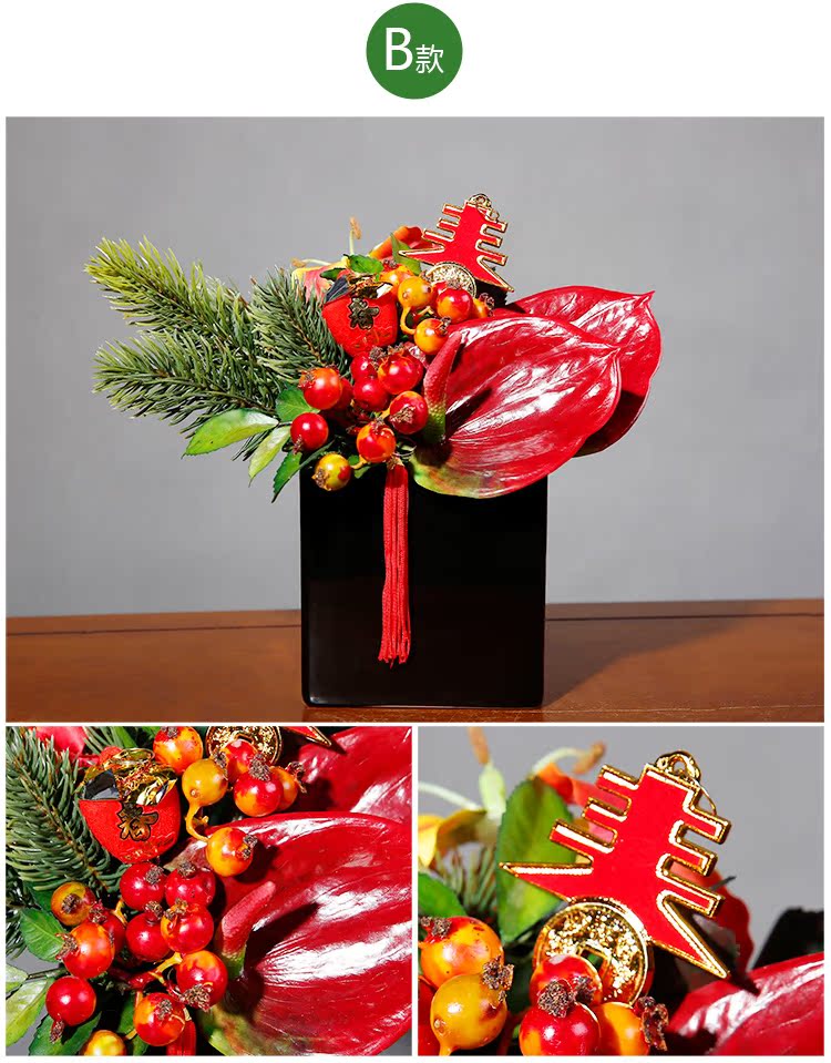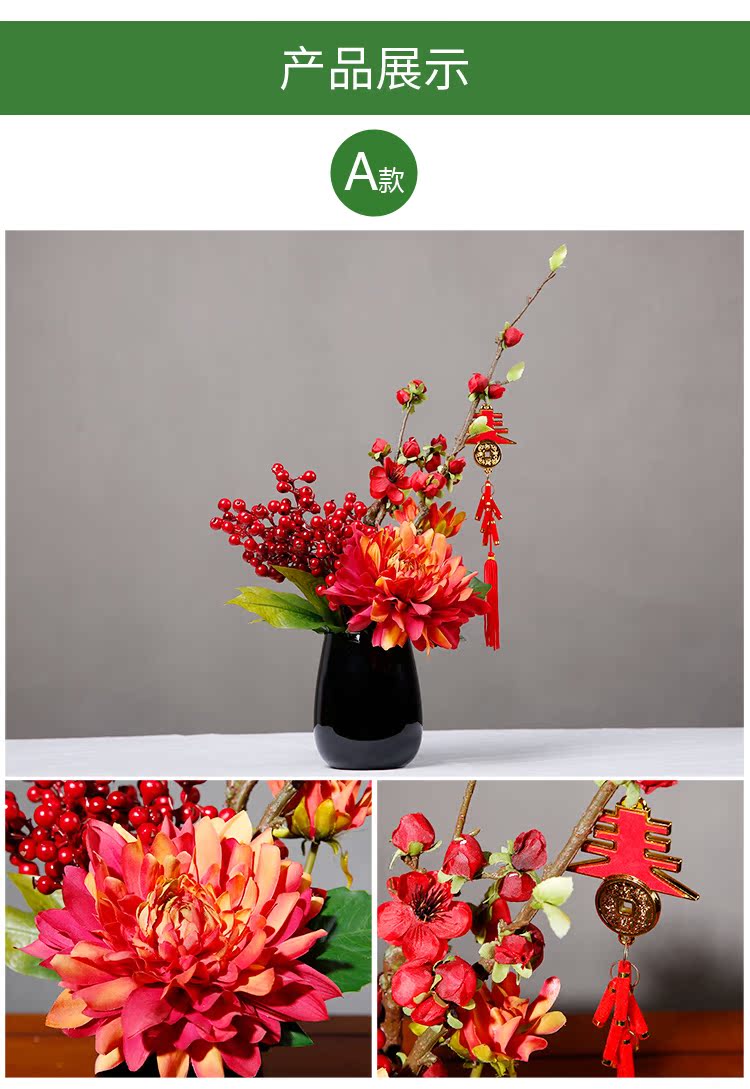 A款-紅色小桌花紅色仿真花客廳擺件裝飾花家居裝飾新年春節裝飾品
