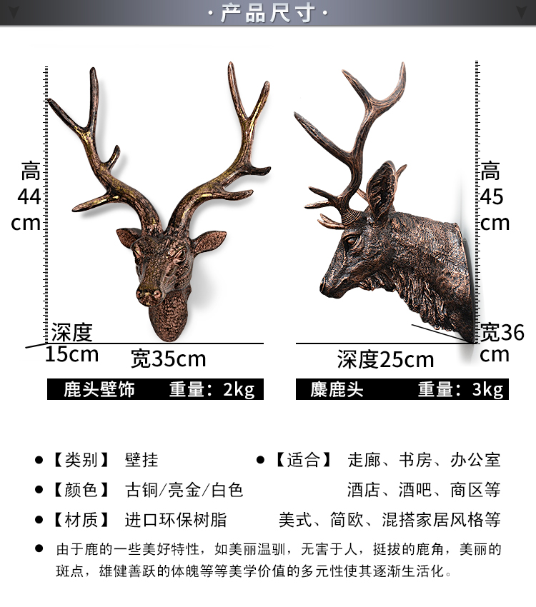 A款白色歐式墻飾掛飾壁飾鹿頭擺件掛件鹿角壁掛復古歐式創意動物墻壁飾品